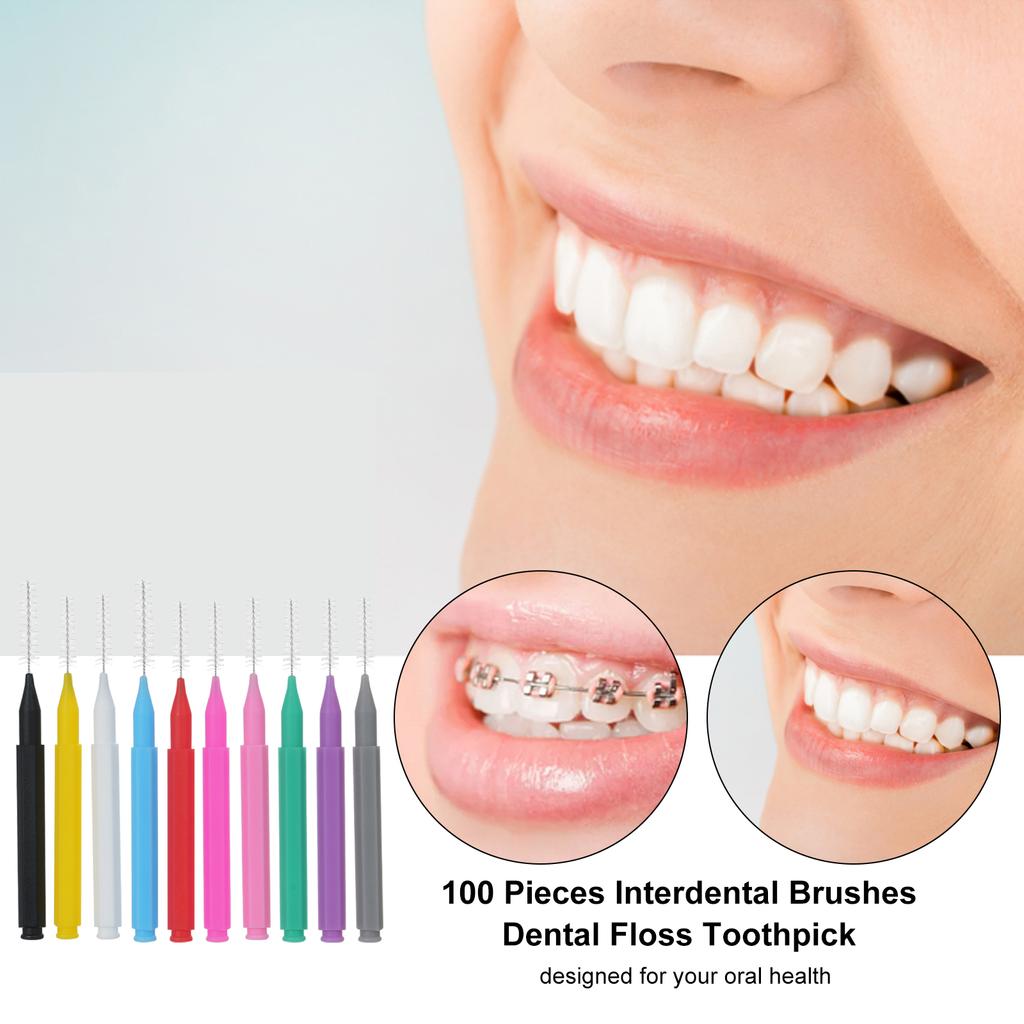 100 шт. межзубные щетки, зубная нить, зубочистка, ортодонтические брекеты, щетка для чистки зубов