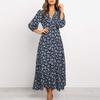 Женщины Длинное платье Sleleve Maxi, Повседневное платье с цветочным принтом V-образным вырезом, Сарафан с высокой талией с прорезью цветка, платье maxi для вечеринок, цветочная пляжная одежда Boho