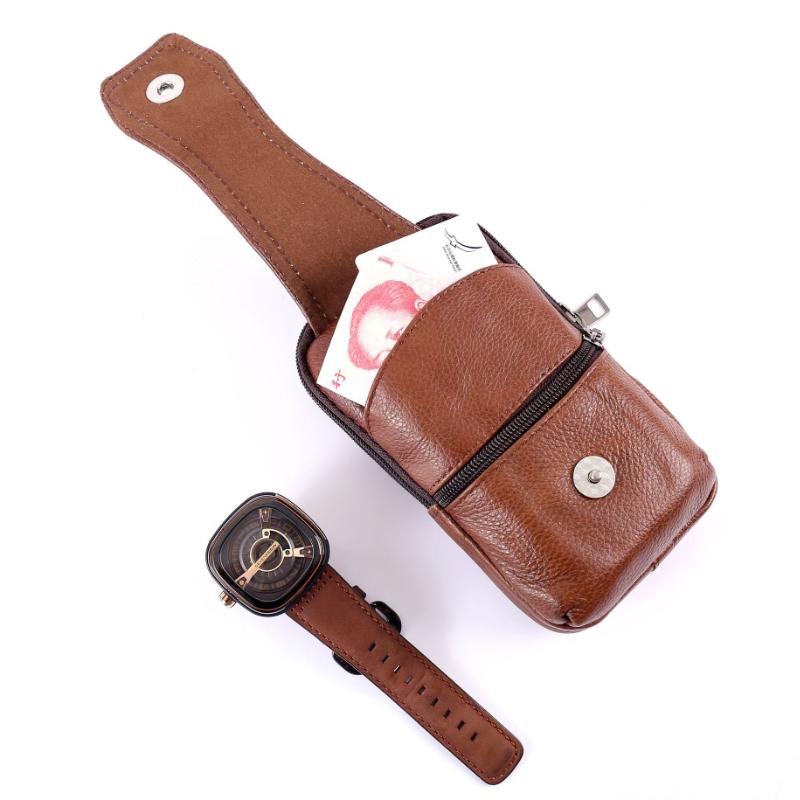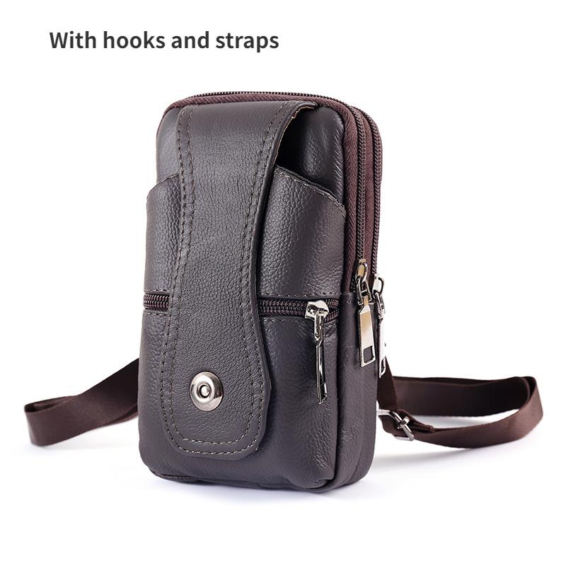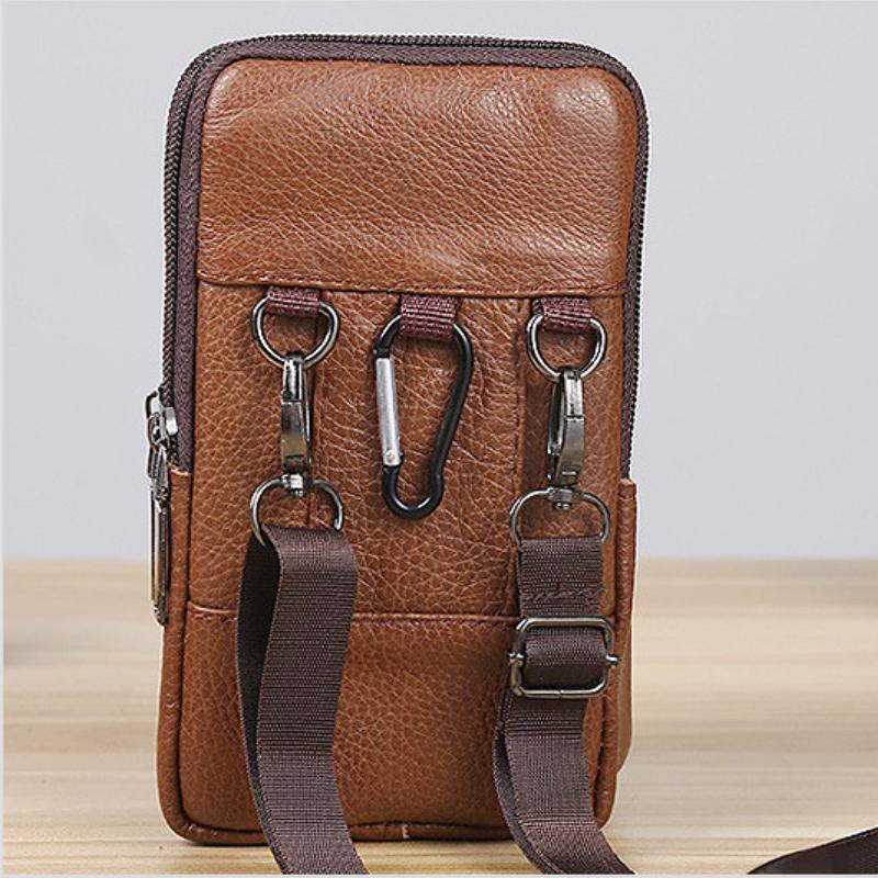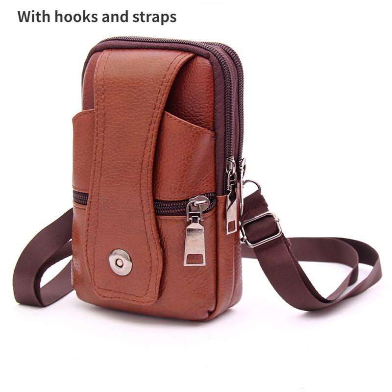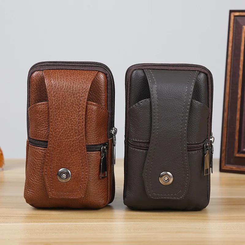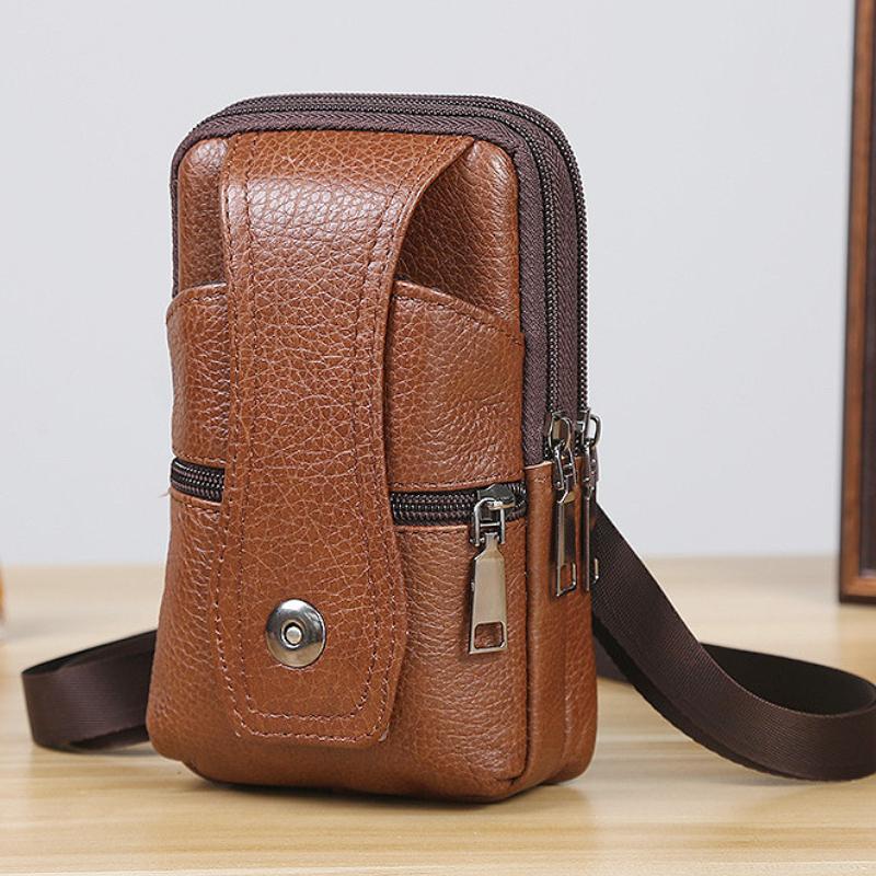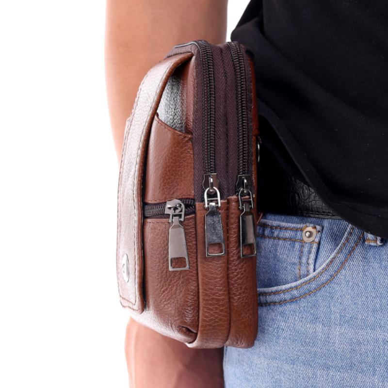 Мужская кожаная поясная сумка, большая вместительная поясная сумка, коричневые сумки на плечо, сумки через плечо, многослойная пряжка, сумка для мобильного телефона, поясная сумка