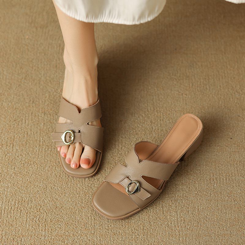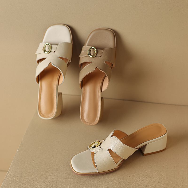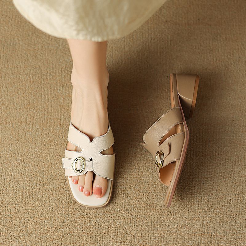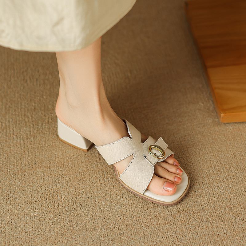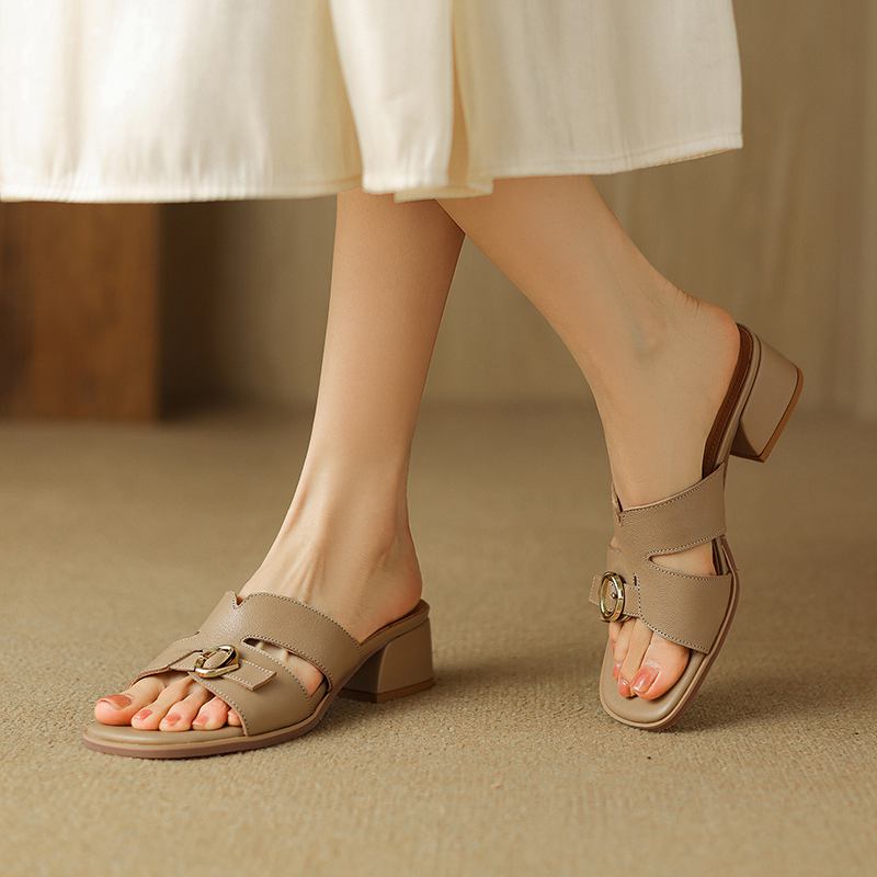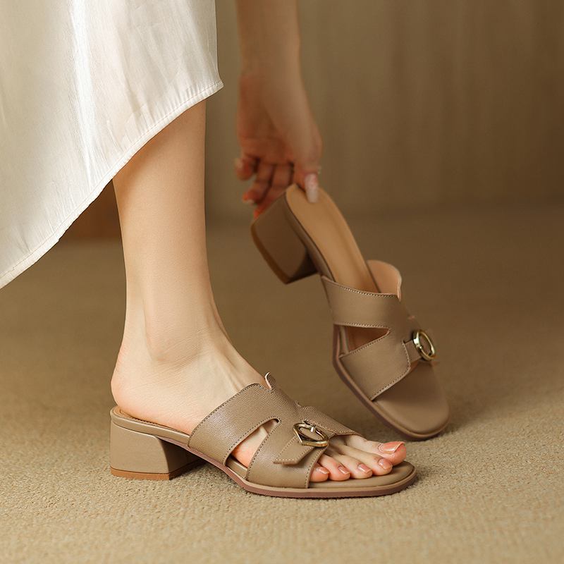 Krazing Pot Летние туфли-сабо из овчины с открытым носком на толстом каблуке, размер 43, дизайнерские женские сандалии с круглой пряжкой для отдыха