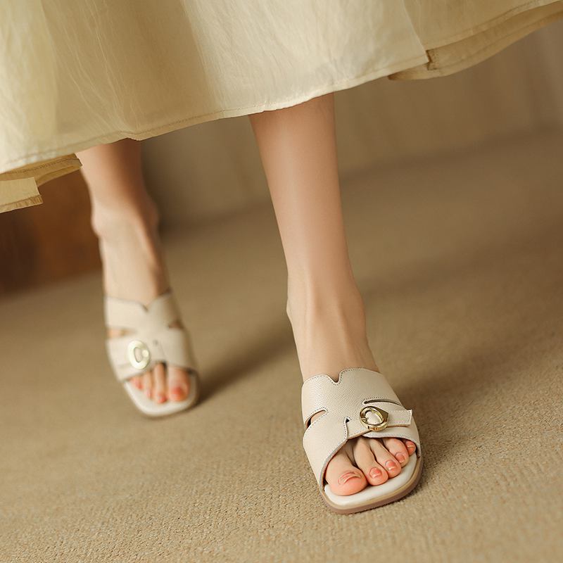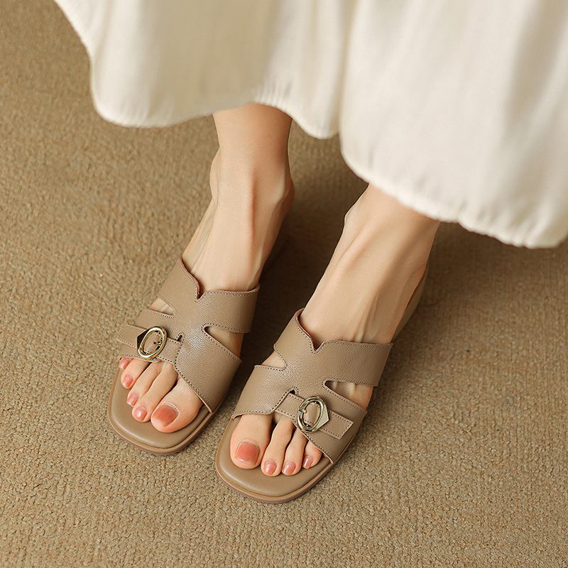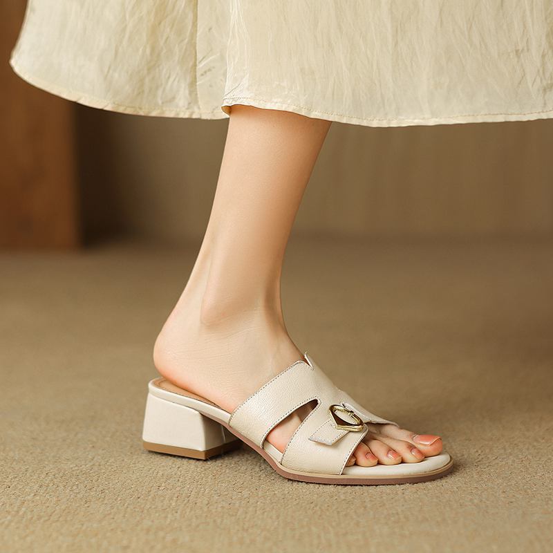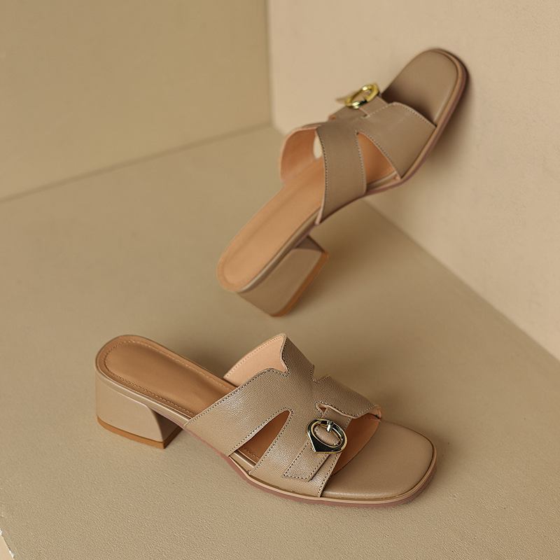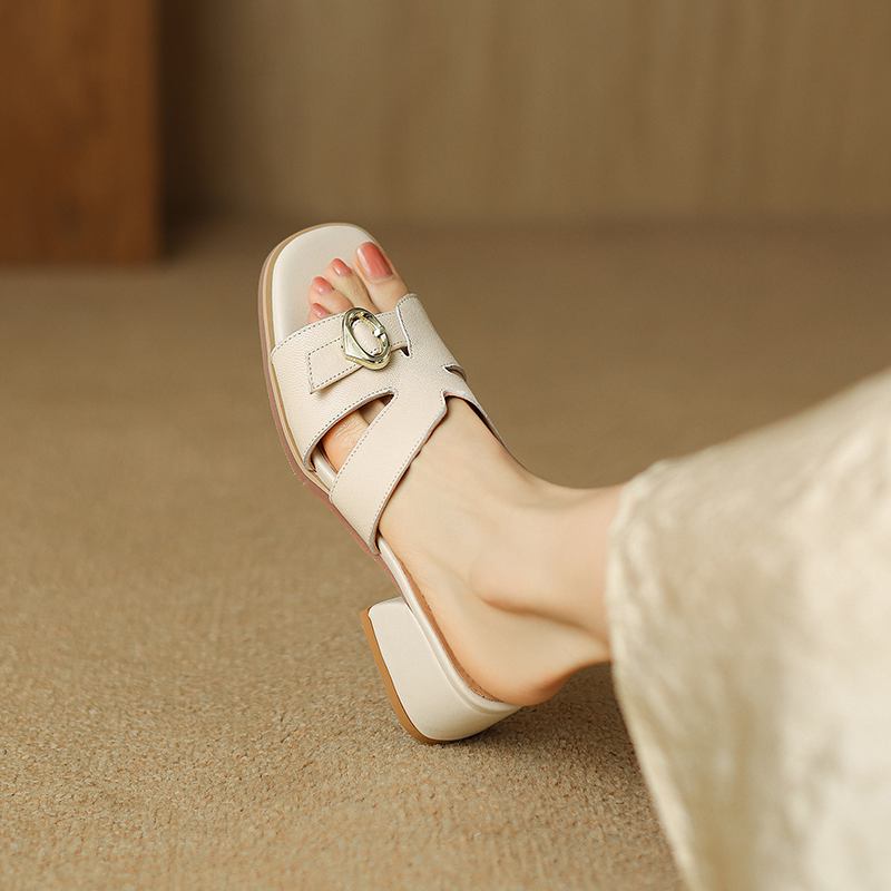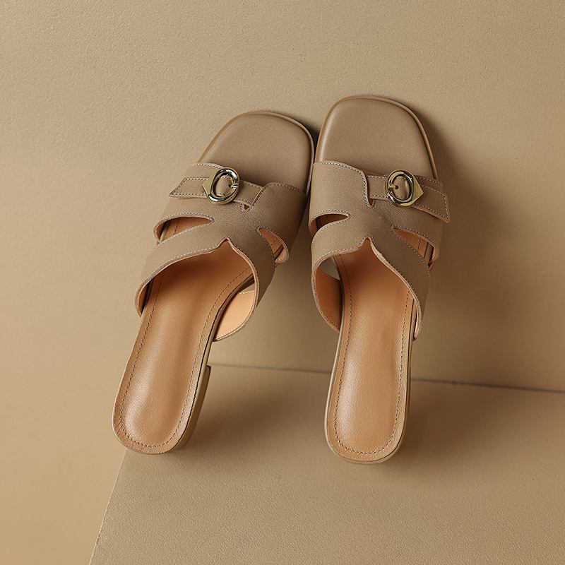 Krazing Pot Летние туфли-сабо из овчины с открытым носком на толстом каблуке, размер 43, дизайнерские женские сандалии с круглой пряжкой для отдыха