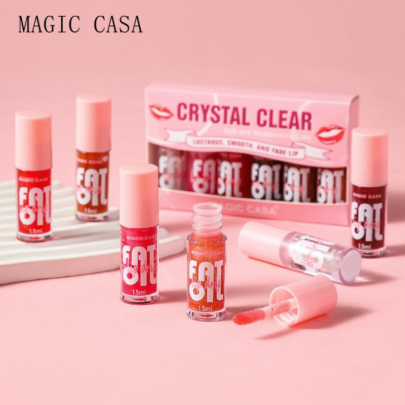 6 шт./компл. увлажняющее желейное масло для губ, пухлые губы, увлажняющий бальзам для губ, глазурь для губ, долговечный высокопигментированный блеск для губ, помада