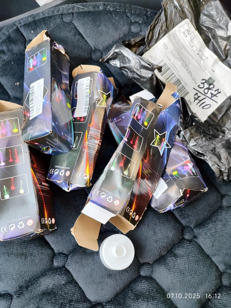 В Минск посылка доехала за месяц, все работает, цвета меняет, нужны три минизиньчиковые батарейки