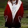 Женская большая куртка с теплой и плюшевой курткой на пуговицах с капюшоном с градиентным принтом и карманами
