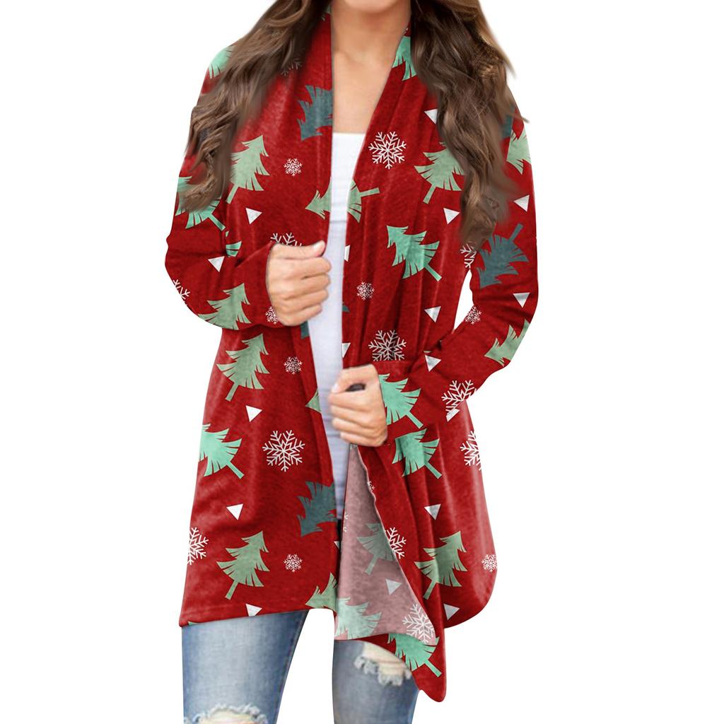 Рождественская женская мода Повседневная куртка-кардиган с длинным рукавом с принтом — купить товар онлайн с бесплатной доставкой до всему миру!