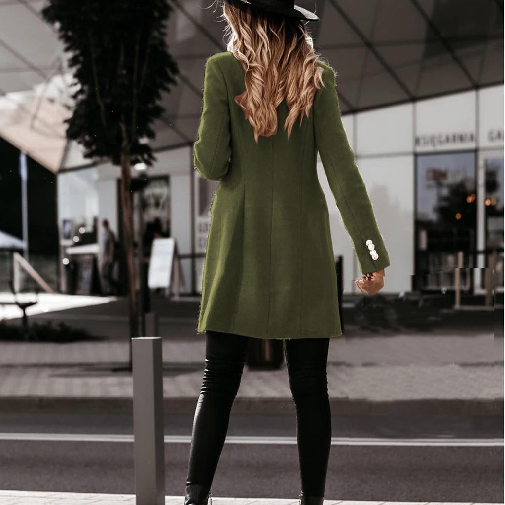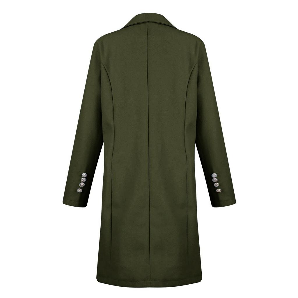 Женская мода с длинным рукавом и двойной пуговицей шерстяное пальто осень и зима
