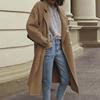 Зимние пальто для женщин, теплые однобортные пальто из искусственной шерсти, тренчи, шерстяные пальто, куртки, тонкое длинное пальто с лацканами, верхняя одежда
