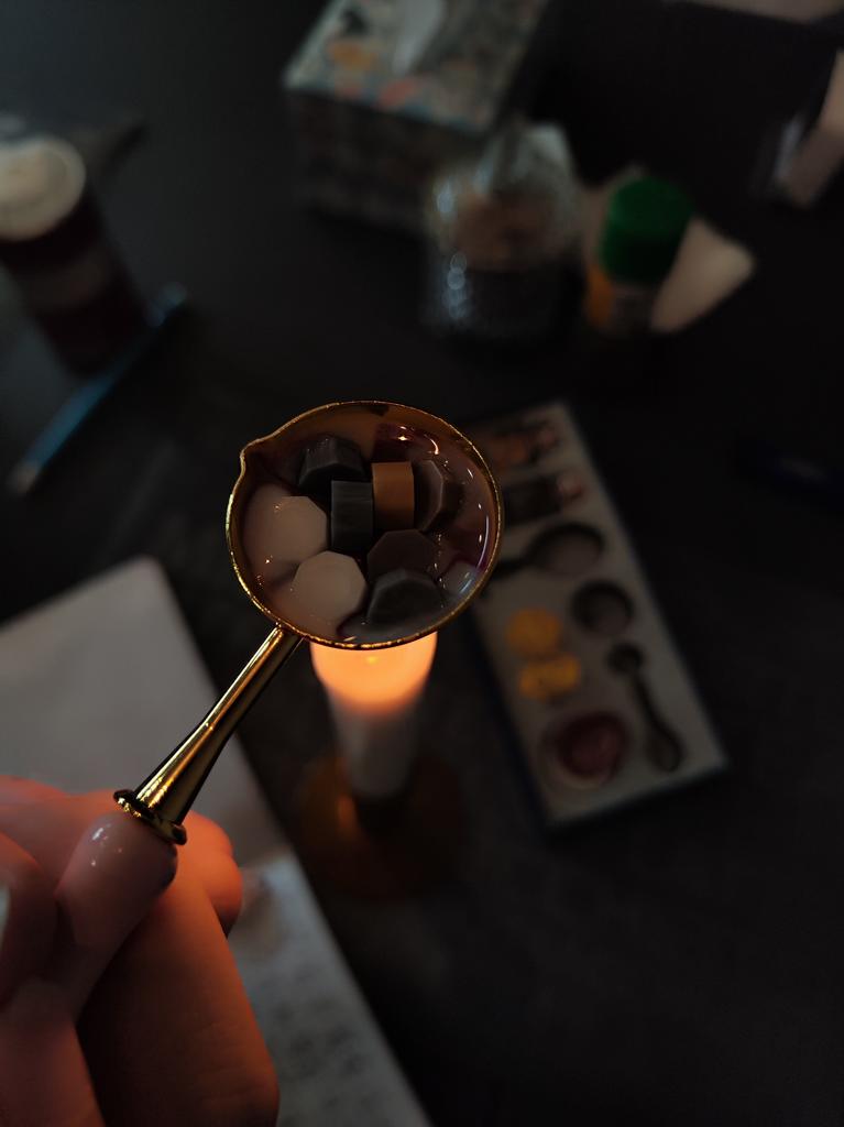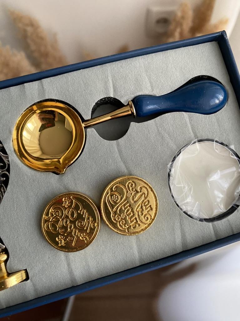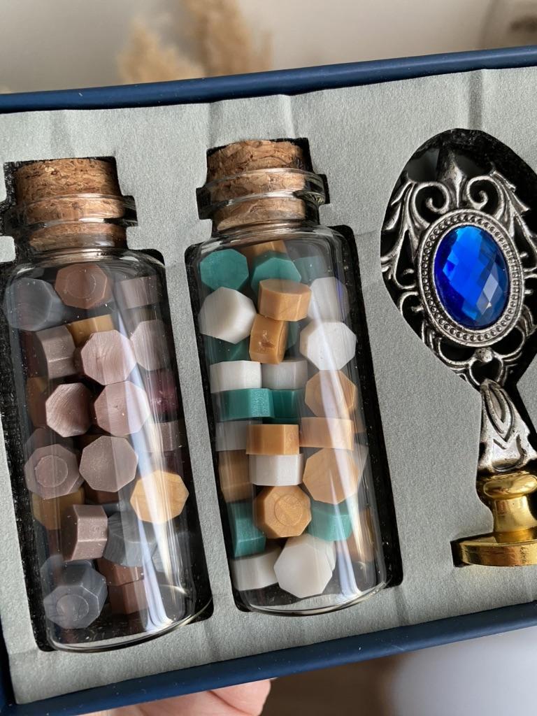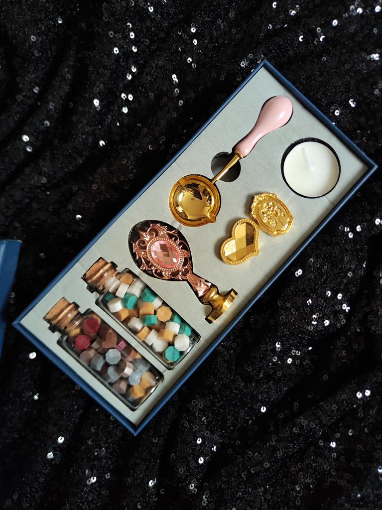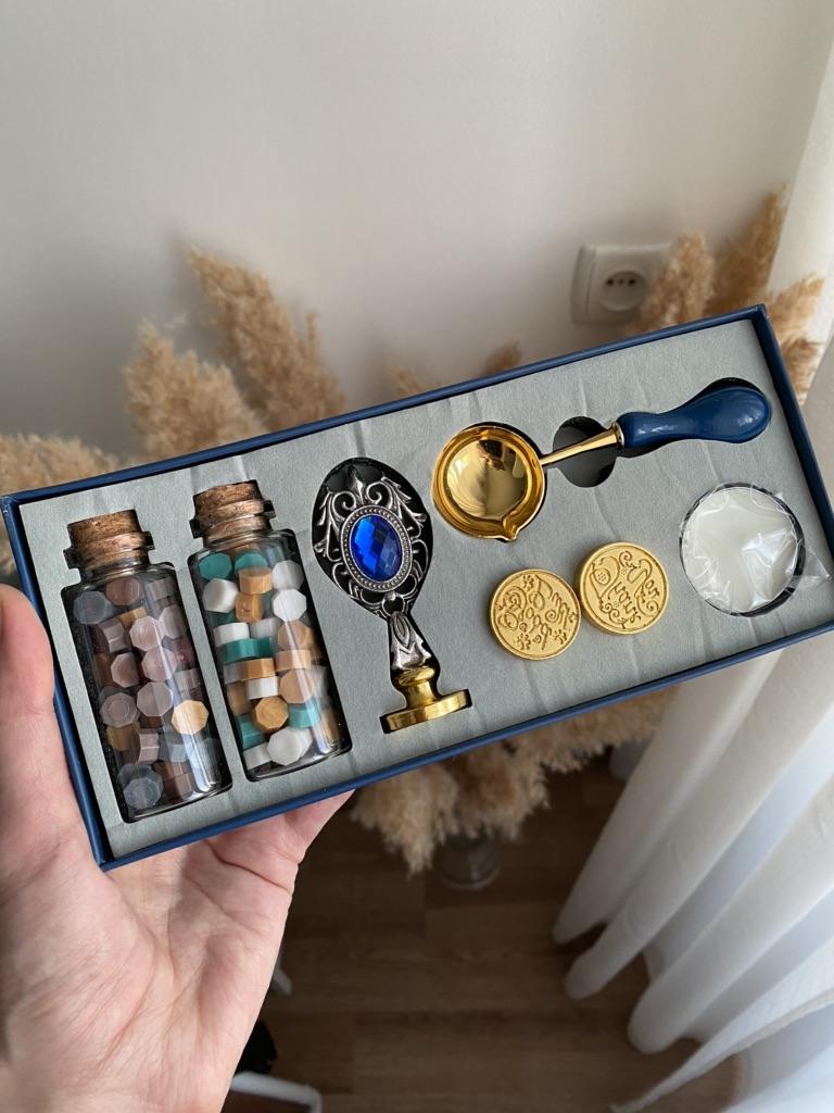Подарочный набор для сургучной печати❤️ Подарочный набор для сургучной печати - это возможность изысканно декорировать любые предметы и подарки своими руками. Набор для творчества и скрапбукинга - подойдет для подарка. Необычное оформление конвертов, приглашений, открыток, грамот, писем, и даже кондитерских изделий. Создания сургучных оттисков, печать для сургуча применяют в технике скрапбукинг и каллиграфии. Несколько оттенков сургуча в наборе для творчества позволяют получить любой желаемый цвет. В состав набора для скрапбукинга входит изящный резной штамп ( в нашем случае их 3) для сургуча (сургучная печать), ложка для плавления сургуча, сургуч в стеклянной баночке (набор смолы), свечи. Этот набор для сургучной печати подарочный содержит в себе всё для создания красивого и качественного оттиска. Доставка заняла три недели. Надеюсь именник будет рад этому подарку. Рекомендую 😘