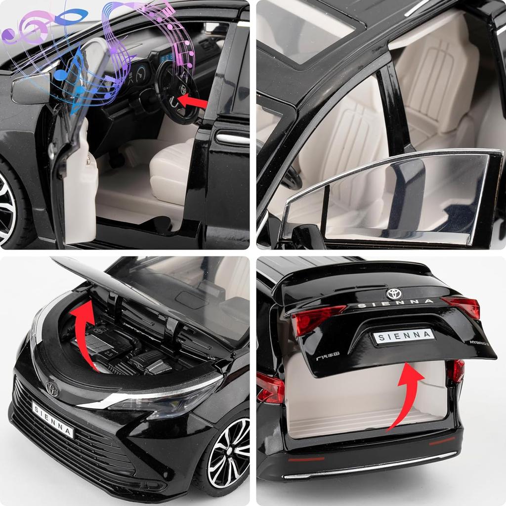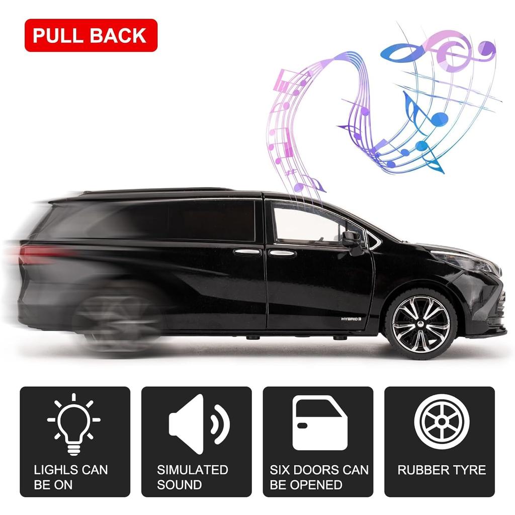 Модель автомобиля Toyota Sienna 1/24, игрушечная литая машинка с электроприводом, со звуками и огнями для детей, мальчиков, девочек и взрослых, подарок