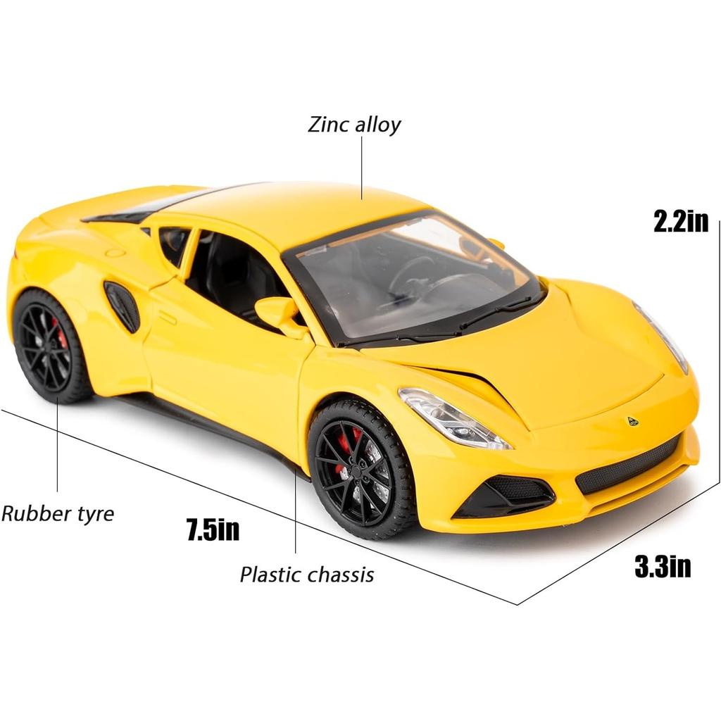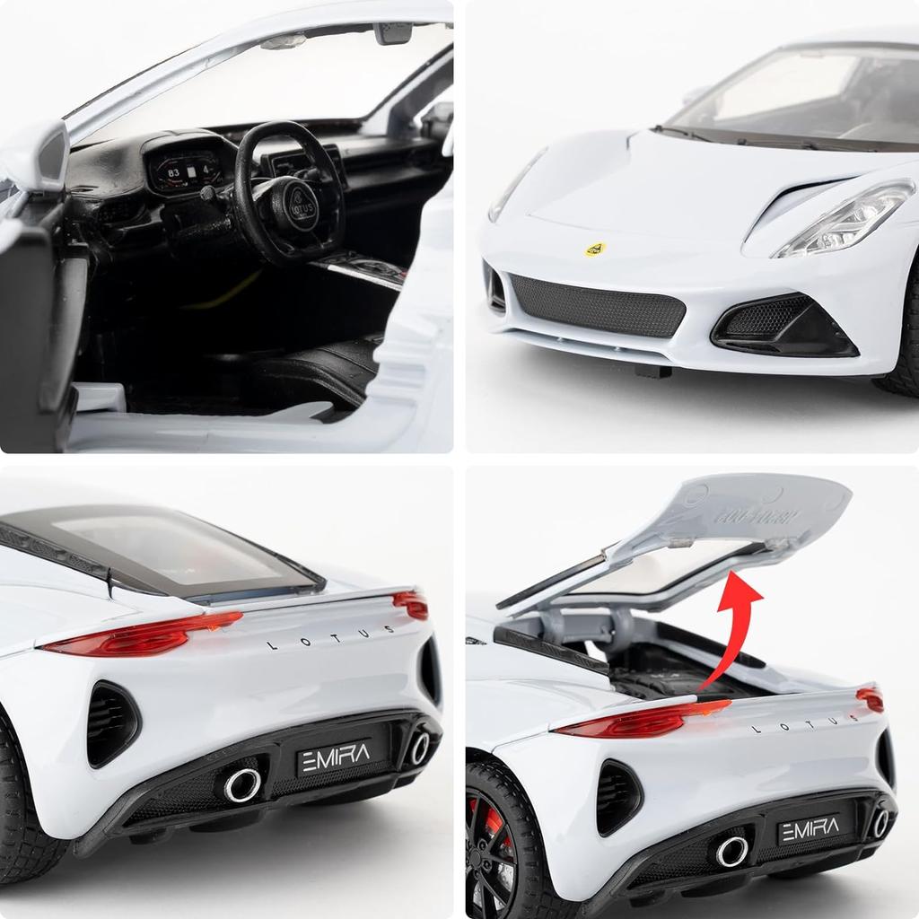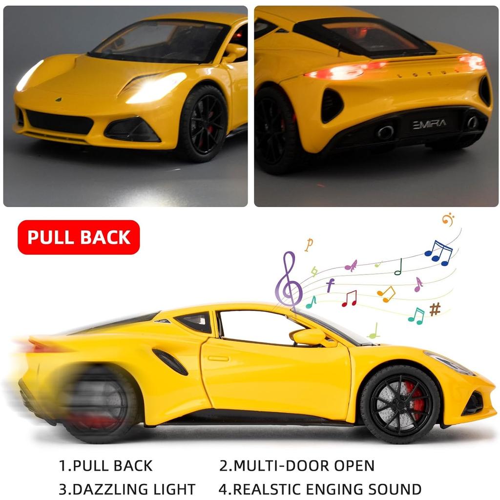 1/24 масштабная модель автомобиля Lotus Emira, игрушечный автомобиль из цинкового сплава со звуком и светом для детей, подарок для мальчиков и девочек