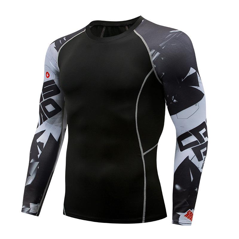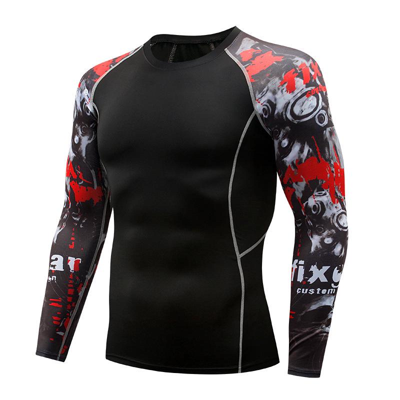 Мужская модная футболка с длинным рукавом с принтом, мужская эластичная тренировочная футболка, колготки для тренировок в тренажерном зале, фитнес-тренировках, спортивный трикотаж, спортивная рубашка для бега, мужская рубашка