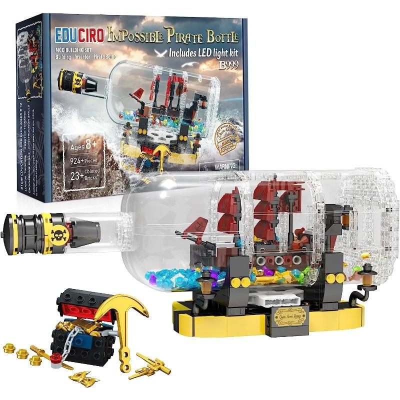 924 шт. креативный корабль в бутылке, строительные блоки, красный парус, модель пиратского корабля, набор кирпичей со светом, детские игрушки «сделай сам», подарок на день рождения