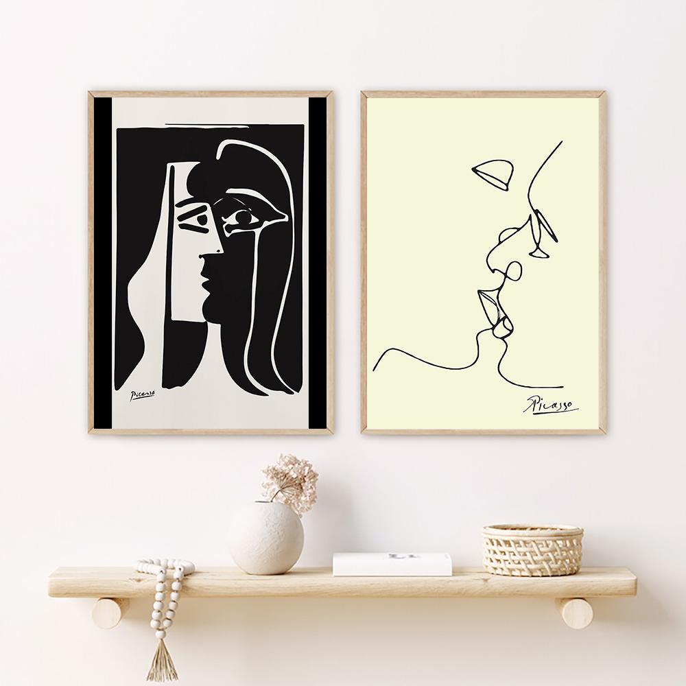 Поцелуй Пикассо Абстрактные фигуры Плакат Смешивание в лице Настенная живопись Печать на холсте Картина Украшение гостиной Домашний декор