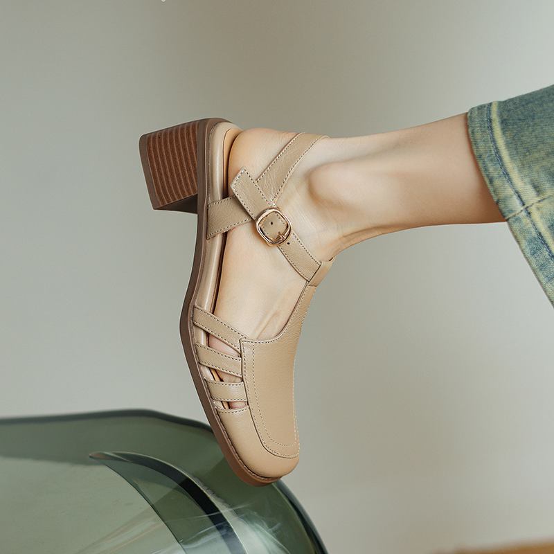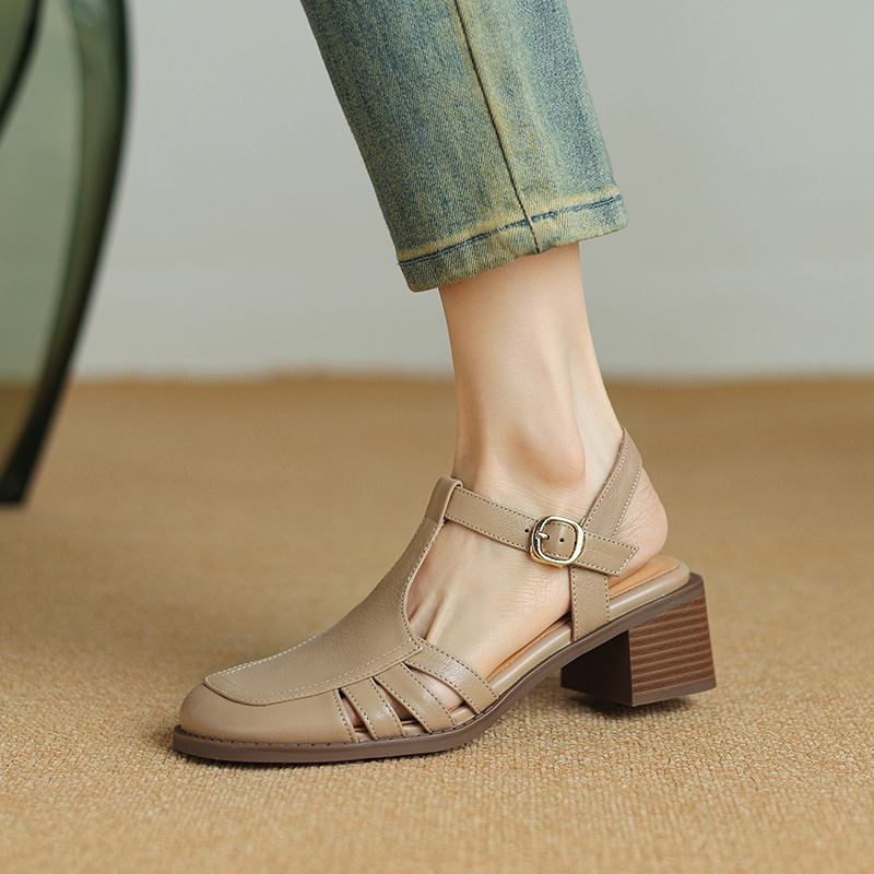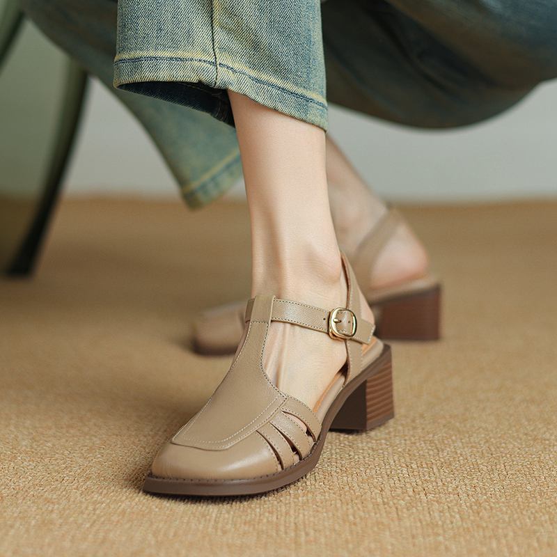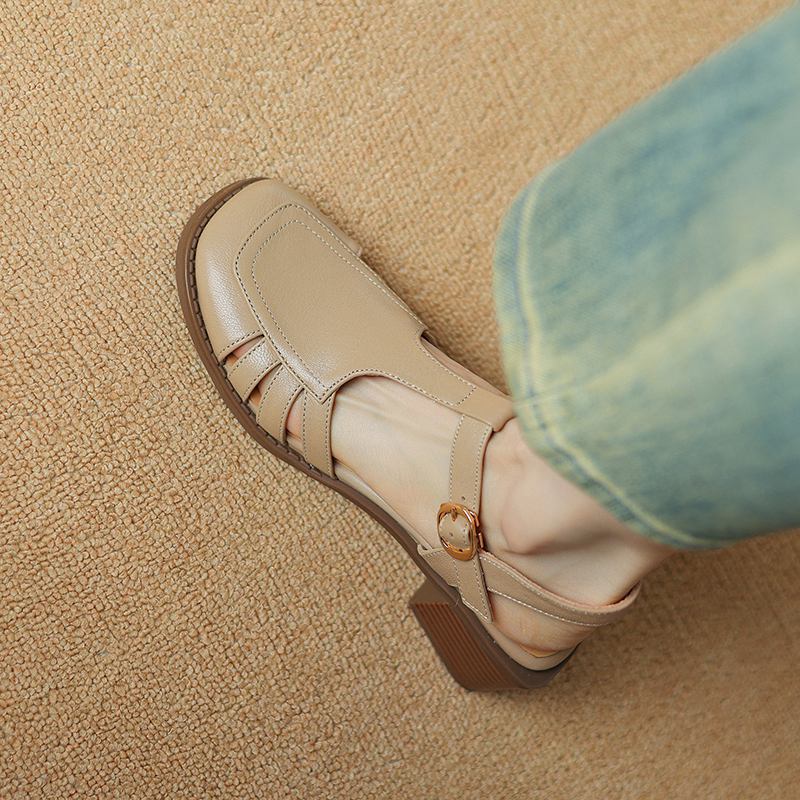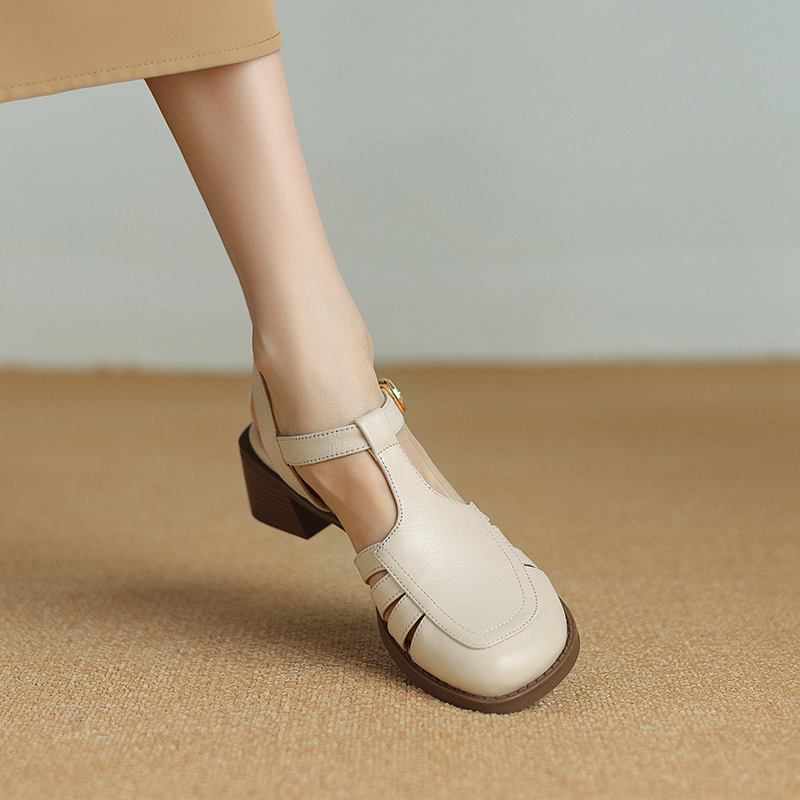 Krazing Pot, женские туфли-лодочки из овчины с пряжкой и пряжкой, круглый носок, средний каблук, осень-лето, полые украшения, женские туфли-лодочки