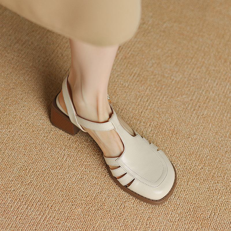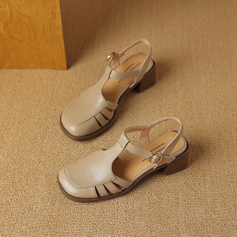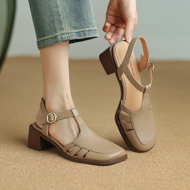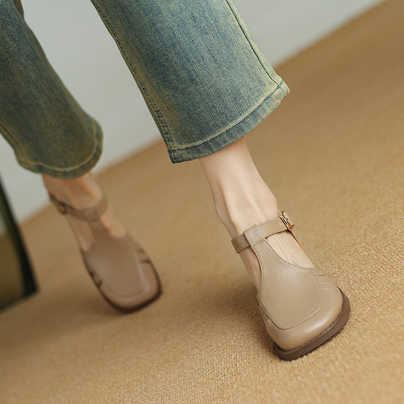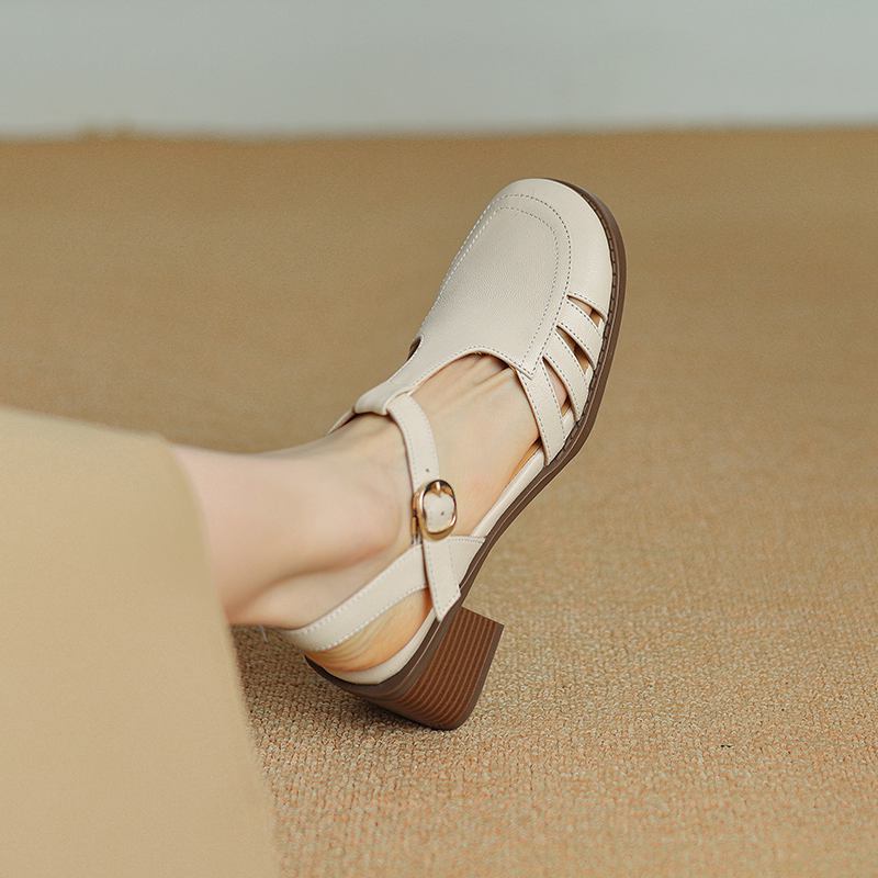 Krazing Pot, женские туфли-лодочки из овчины с пряжкой и пряжкой, круглый носок, средний каблук, осень-лето, полые украшения, женские туфли-лодочки