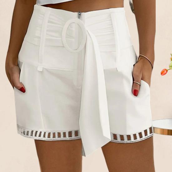 Эти женские повседневные шорты изготовлены из смеси хлопка и льна, обеспечивающей воздухопроницаемость и комфорт на весь день.. Эти шорты с замысловатой полой кружевной строчкой и удобной застежкой-молнией создают простой, но стильный вид..