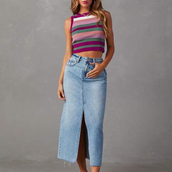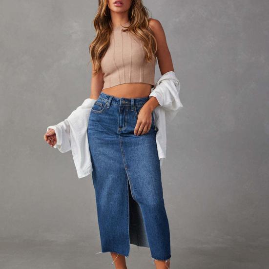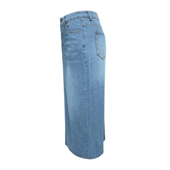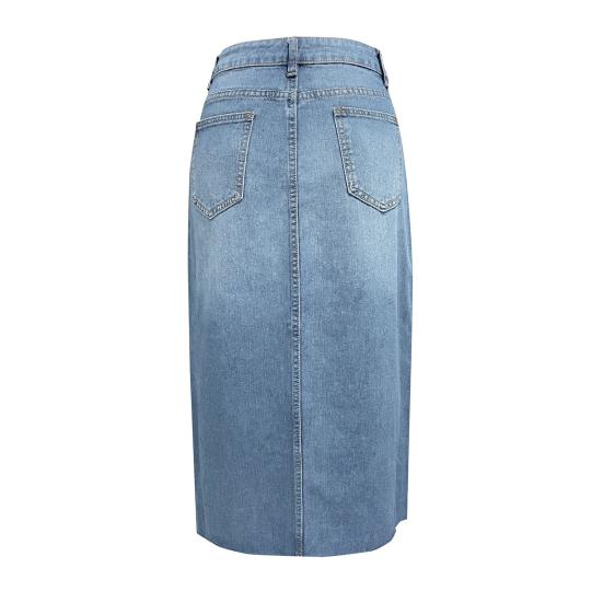 Стиль: Улучшите свой гардероб с помощью этой шикарной джинсовой юбки с высокой талией, сочетающей в себе модный стиль и неподвластную времени элегантность.. А-силуэт с разрезом по центру придаст вашему образу изысканность.