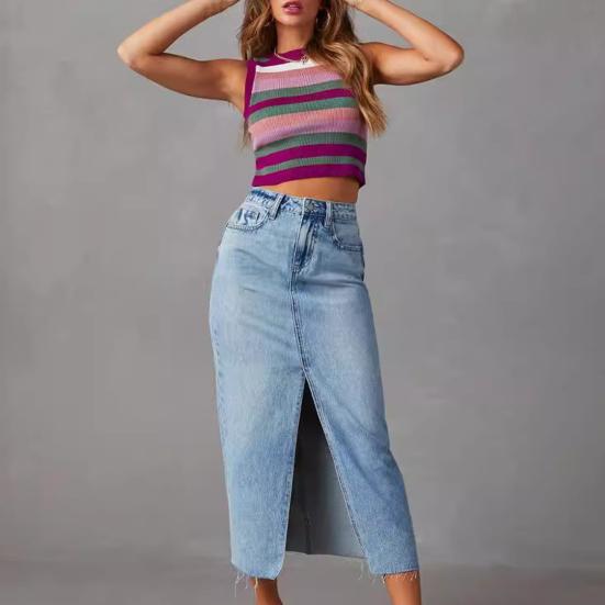 Универсальное сопряжение: Эту универсальную джинсовую юбку можно сочетать с различными верхами, такими как кофточки, футболки или рубашки, для создания индивидуального ансамбля.. Комбинируйте разные предметы одежды, аксессуары, сумки, ожерелья и обувь, чтобы создавать разнообразные комбинации нарядов.