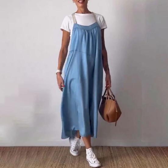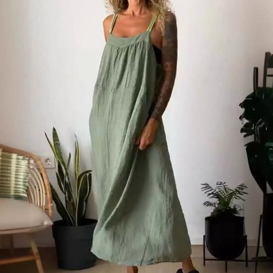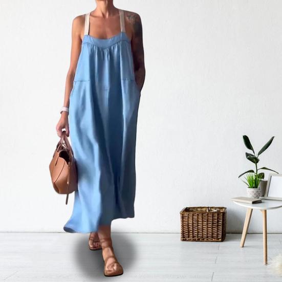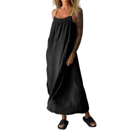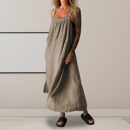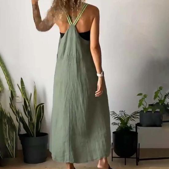 Стиль: Окунитесь в атмосферу богемного шика с этим однотонным платьем на подтяжках без рукавов, которое идеально подходит для тех, кто ценит повседневный, но модный выбор моды.