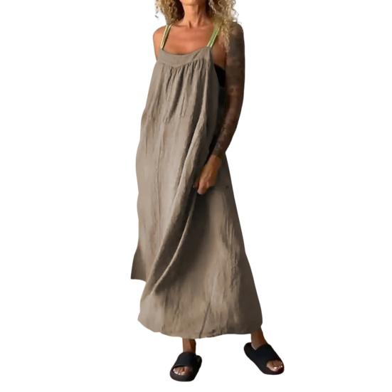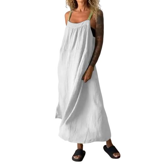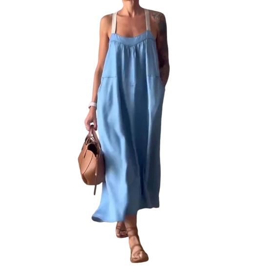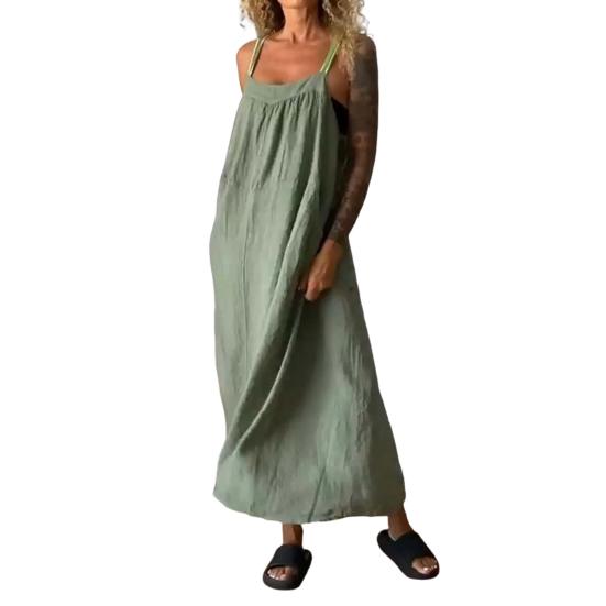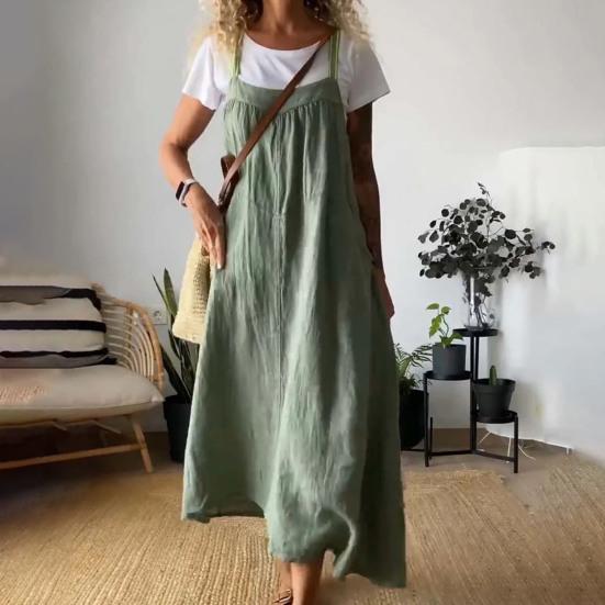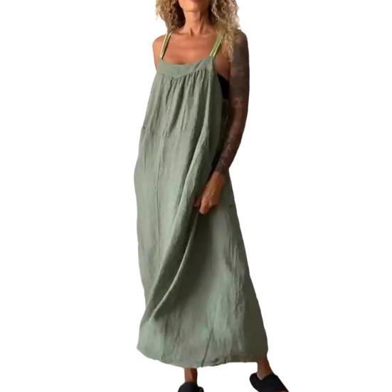 Подчеркните свой летний стиль с помощью нашего универсального платья на подтяжках, доступного в различных цветах, подходящих к вашему настроению.. Это платье, изготовленное из смеси хлопка, льна и спандекса, приятно для кожи и удобно подходит для повседневного ношения..