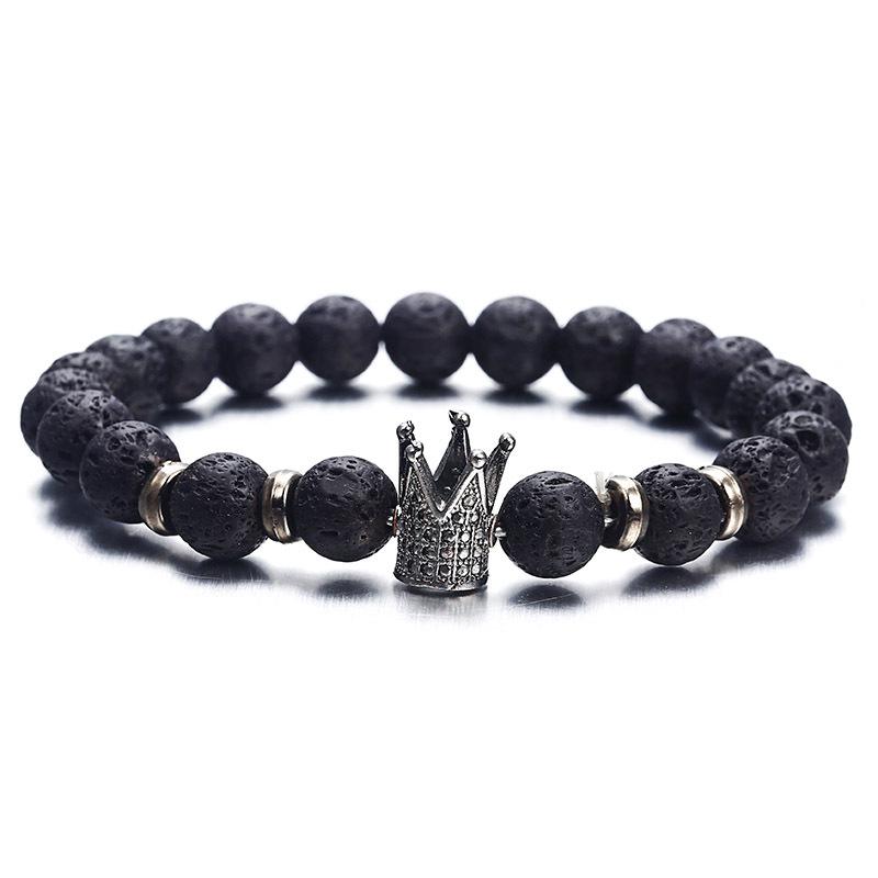 Пара расстояний, черные бусины из лавы, браслеты ручной работы, очаровательная Корона, мужской браслет из натурального камня, женские украшения для йоги, подарок