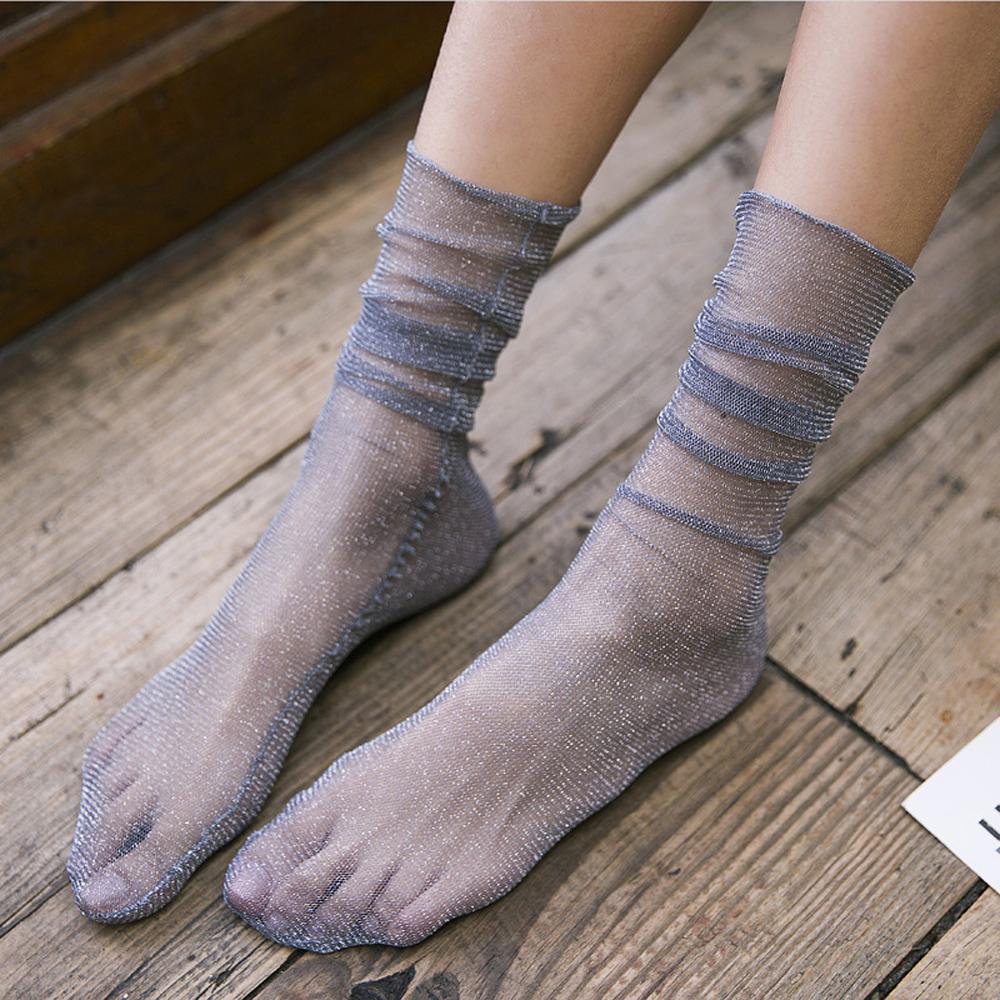 Прозрачные летние модные блестящие женские нейлоновые тюлевые носки с рюшами, чулочно-носочные изделия, сетчатые носки — купить товар онлайн с бесплатной доставкой до всему миру!