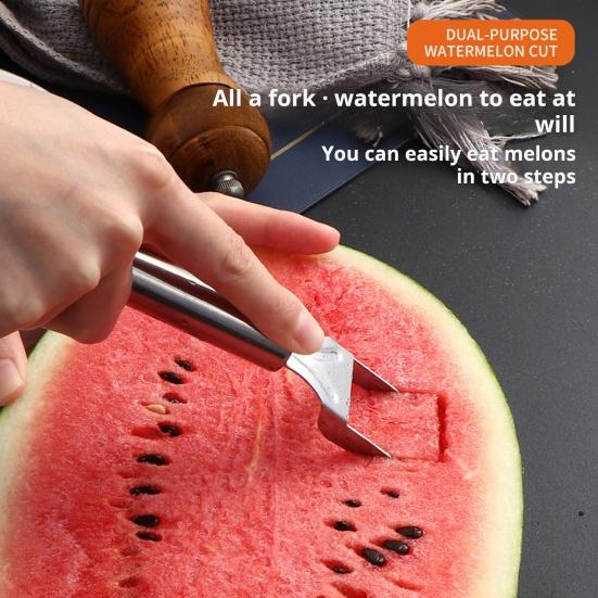 Фруктовая функциональность 2-в-1: Этот универсальный инструмент можно использовать как нож для фруктов, позволяя без труда нарезать арбуз на идеальные кубики.. Попрощайтесь с беспорядочными столами и с легкостью наслаждайтесь аккуратно нарезанными кусочками арбуза.