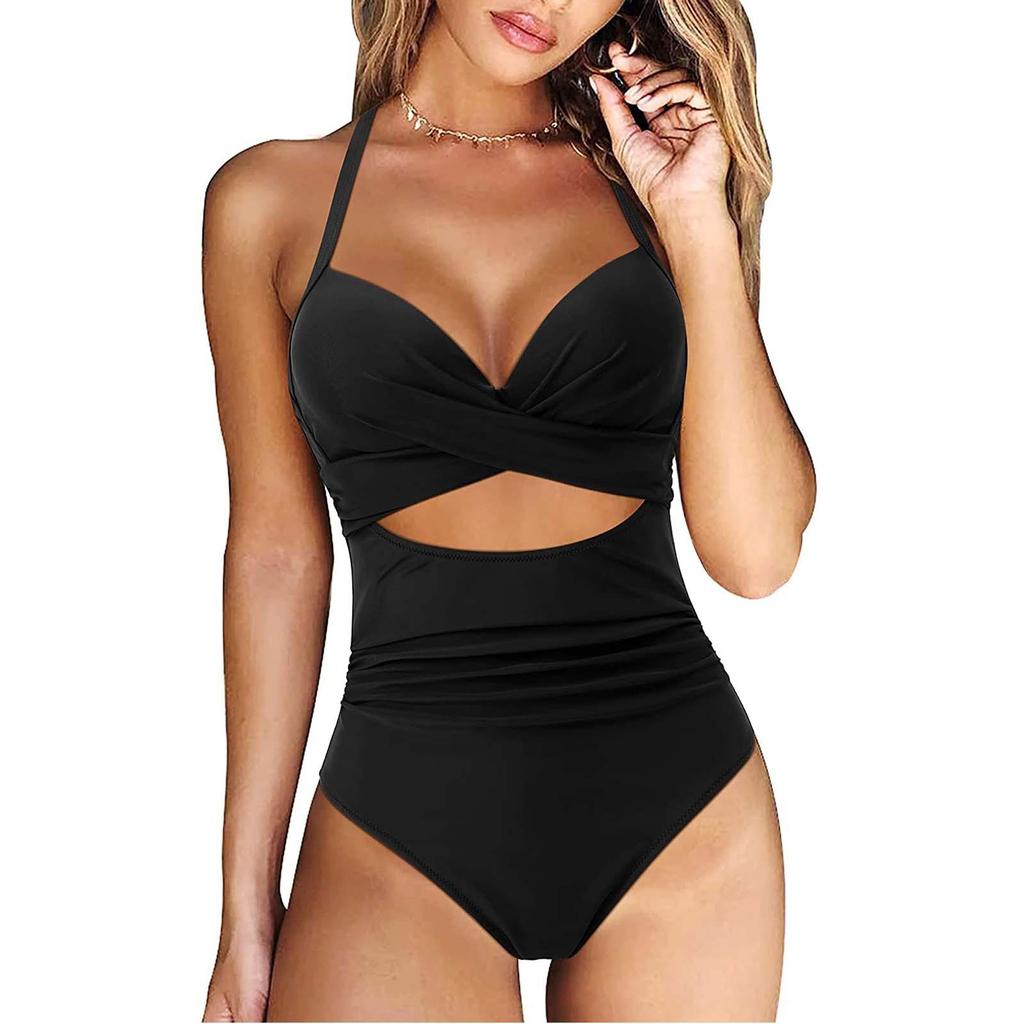 Женские купальники с V-образным вырезом и рюшами, пуш-ап, мягкий купальник, купальный костюм на бретельках