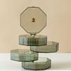 Вращающаяся коробка для хранения ювелирных изделий, стеллаж для хранения макияжа, браслет, серьги, пластиковый органайзер, держатель, стеллаж для выставки товаров с крышкой