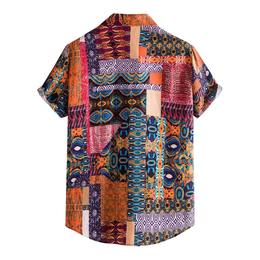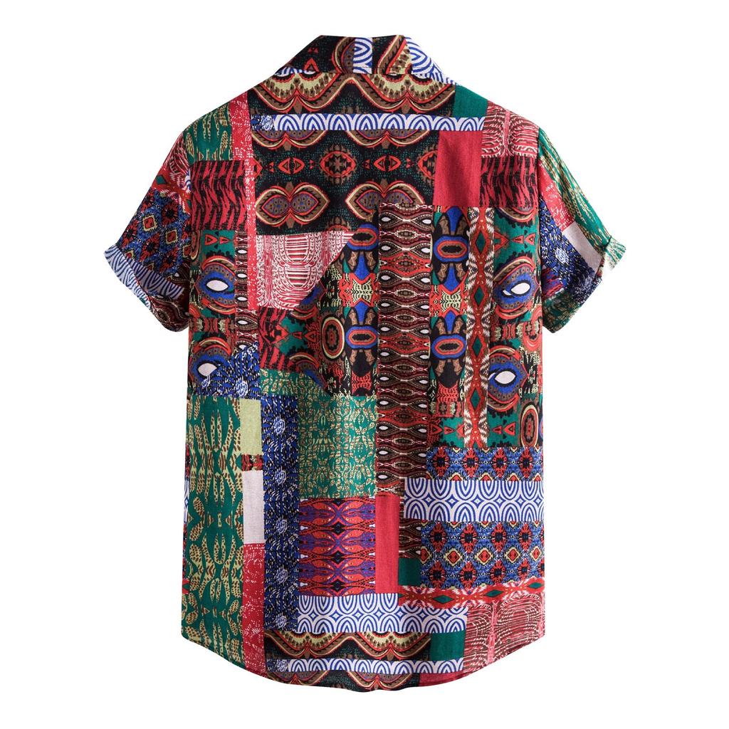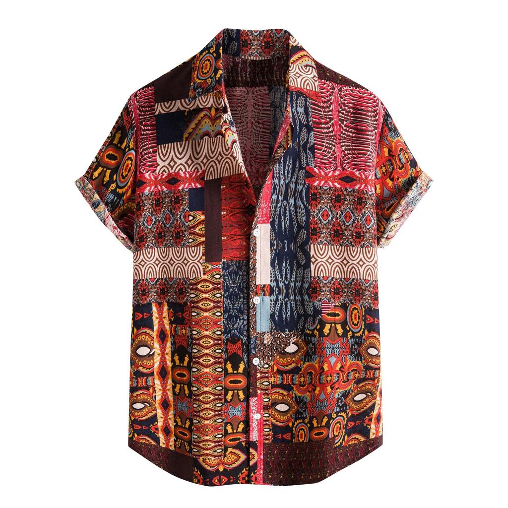 Мужская весенне-летняя повседневная мужская рубашка с принтом в стиле ретро с короткими рукавами и мужским топом
