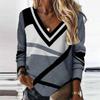 Женская мода, повседневный, темпераментный, новый, с v-образным вырезом, контрастного цвета, с геометрическим принтом, темпераментный, свободный топ с длинными рукавами — купить товар онлайн с бесплатной доставкой до всему миру!