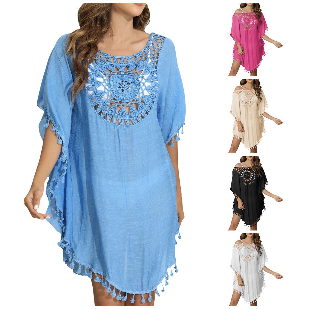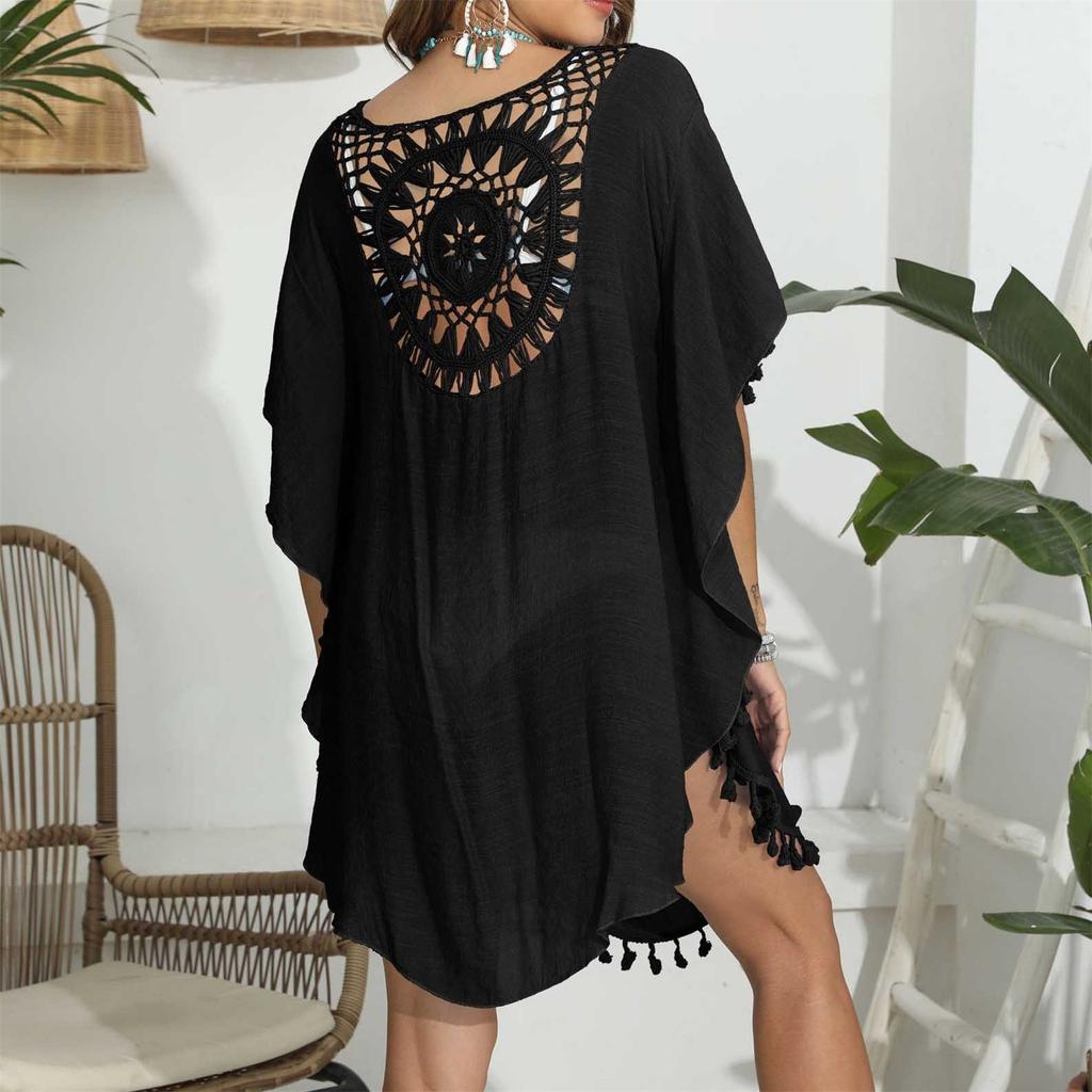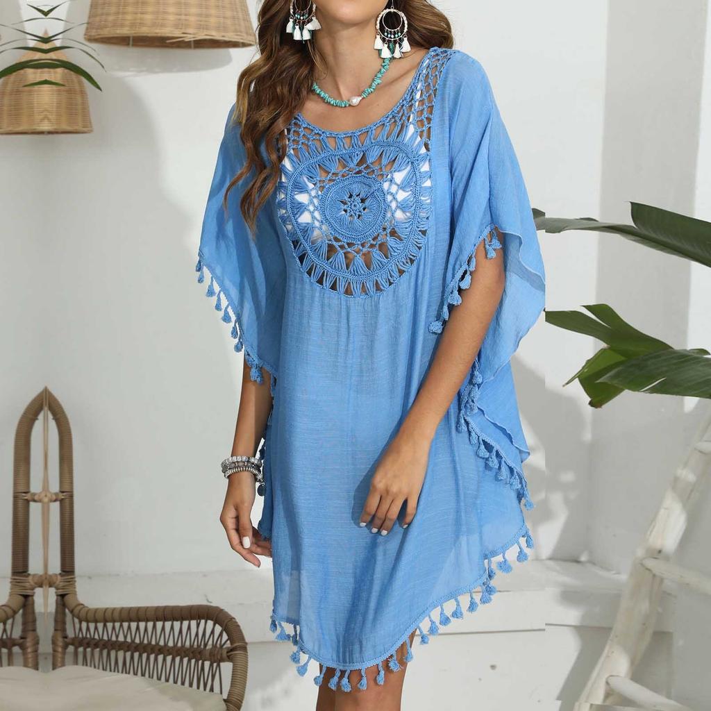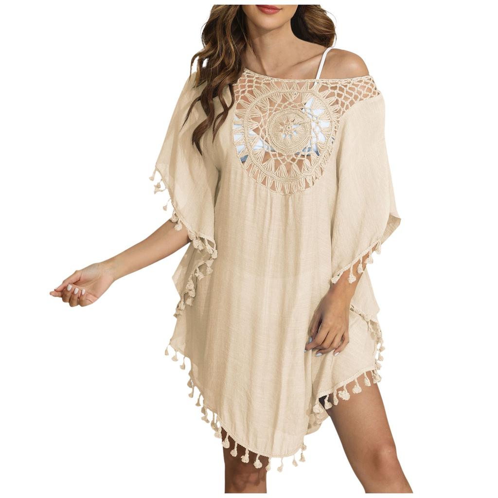 Женское свободное повседневное пляжное бикини с короткими рукавами и кисточками в стиле пэчворк для отдыха