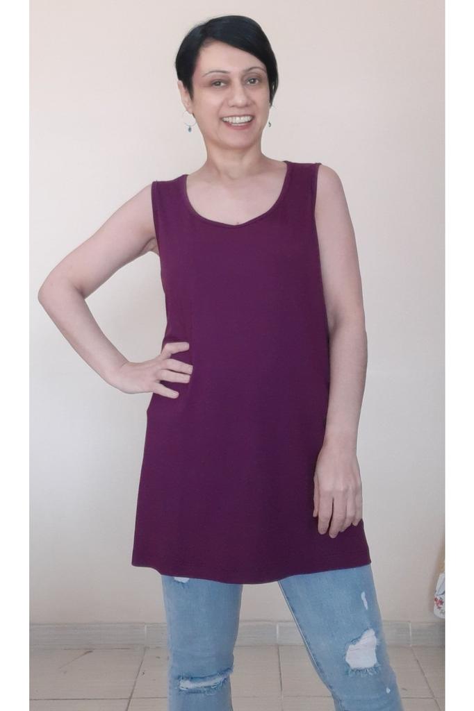Женская стильная футболка большого размера, сливовая футболка с толстым ремешком из чесаного хлопка и вискозы