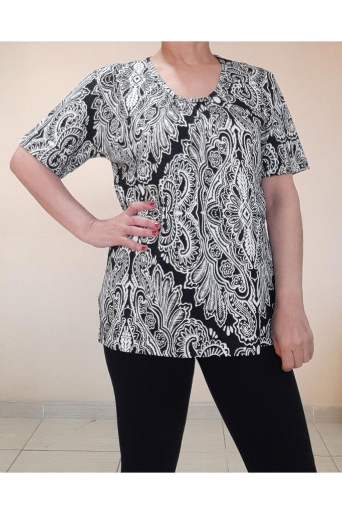 Интернет-магазин Joom предлагает вам недорогие и качественные товары. Женская стильная футболка большого размера, черно-белая футболка из чесаной вискозы с узором и присборенным воротником: цены в Joom самые низкие! Много реальных отзывов с фото! Хотите купить товар еще дешевле? Следите за нашими скидками и акциями!
