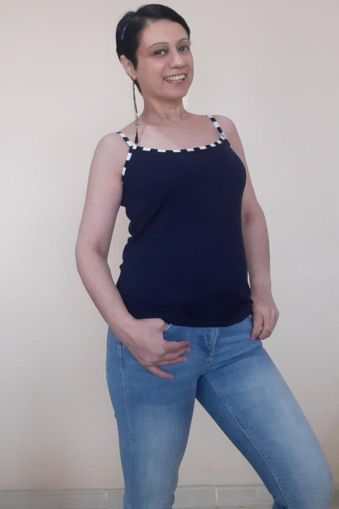 Женская стильная футболка большого размера, темно-синяя футболка с ремешком из чесаной вискозной нити и окантовкой