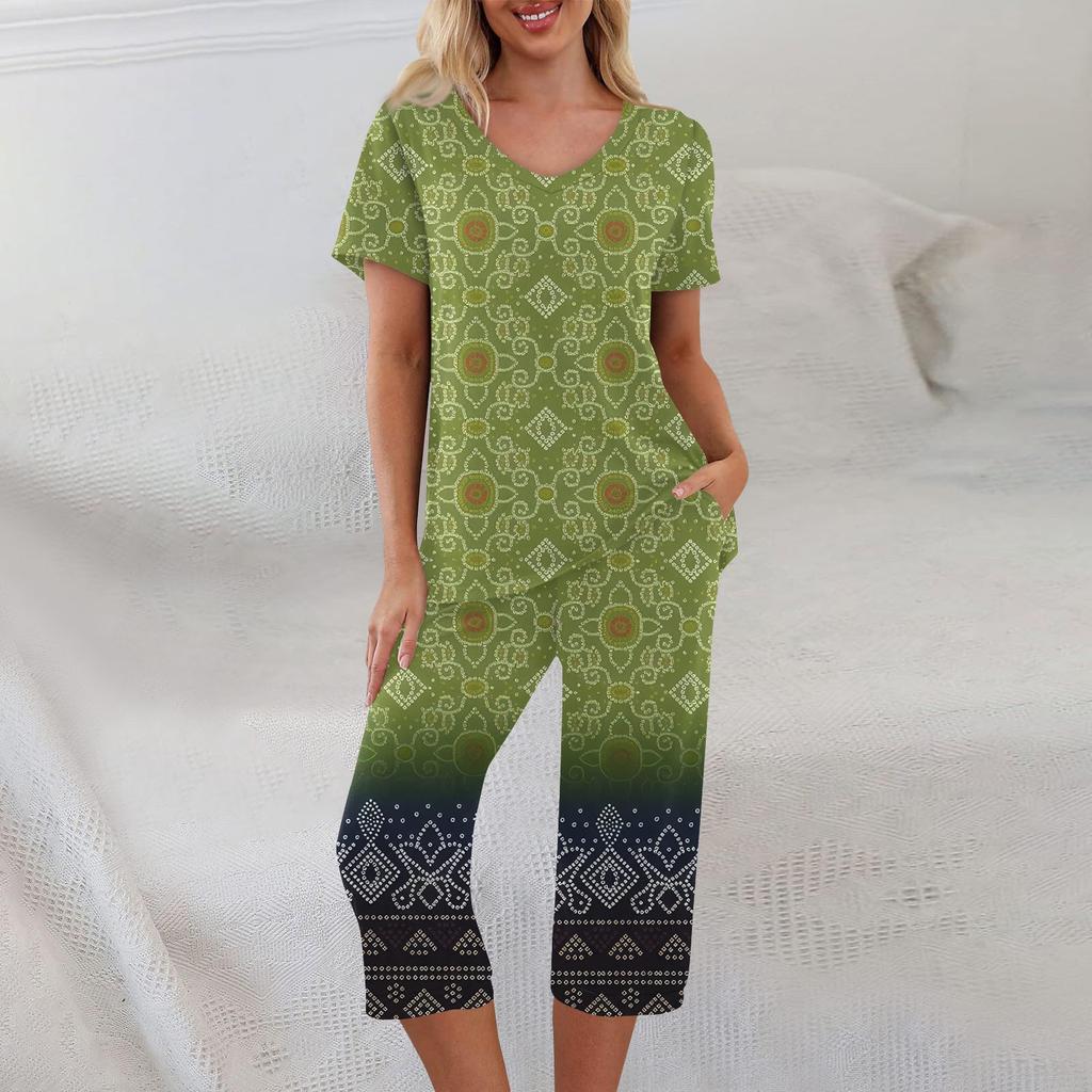 Комплекты из 2 предметов для женщин, летний топ с короткими рукавами и брюки с карманами, мягкие комплекты для тренировок