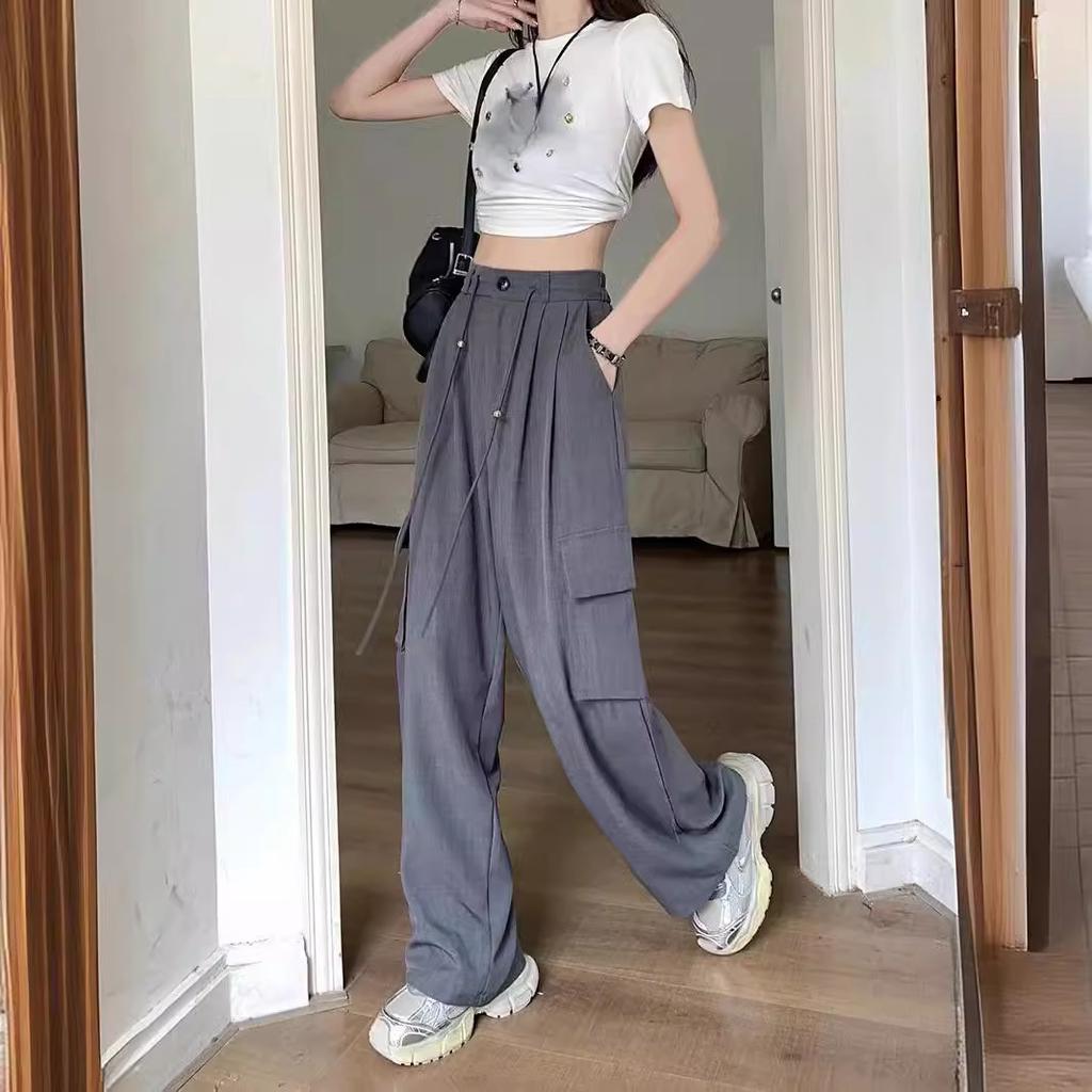 Брюки для спецодежды, летние женские повседневные брюки больших размеров, прямые драпированные свободные широкие брюки