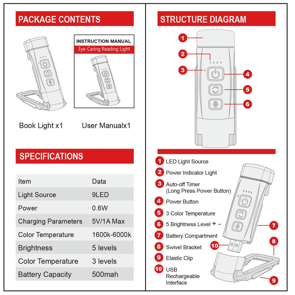 Получите максимум удовольствия от чтения с помощью этой универсальной и удобной лампы для чтения.. Это не только практичный и продуманный подарок для любителей книг, но и стильный и функциональный аксессуар, который улучшит среду чтения.. Почувствуйте разницу с высококачественной лампой для чтения, разработанной с учетом вашего комфорта и удобства.
