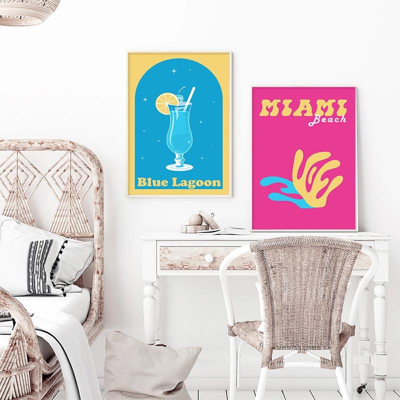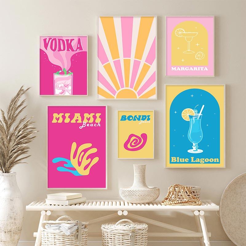 Модные коктейльные закаты, галерея, настенные постеры, Майами Бонай, принт, розовая, желтая картина, эстетическая картина на холсте, декор для комнаты подростка в общежитии