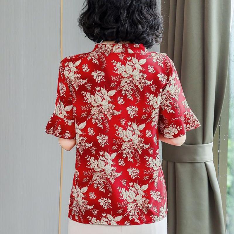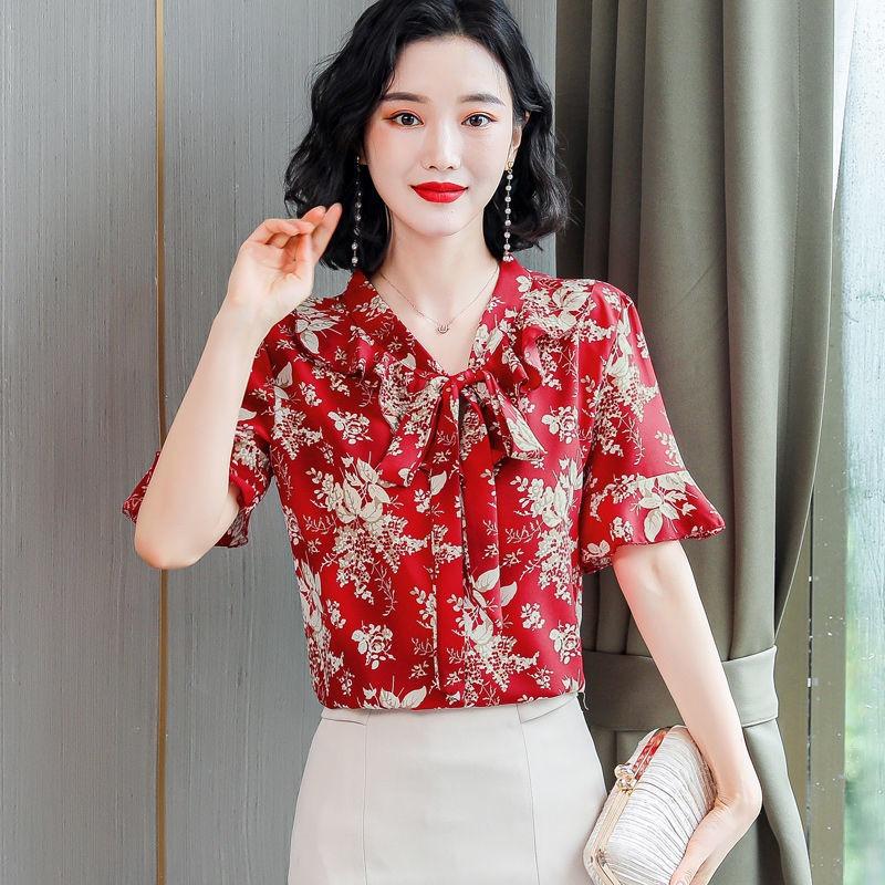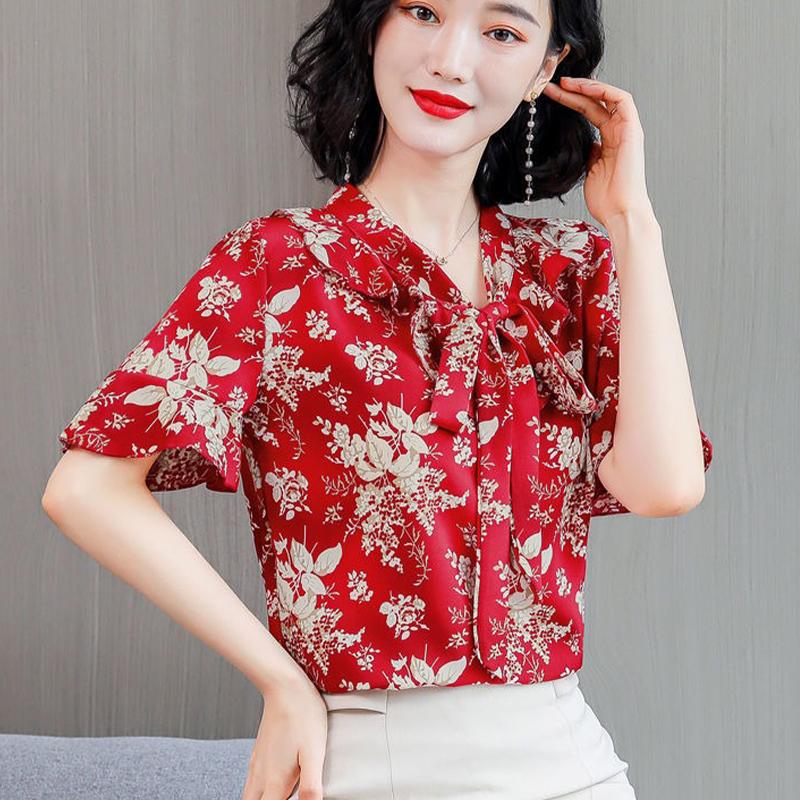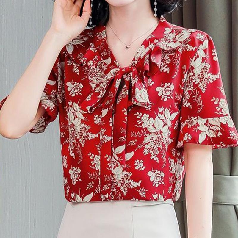 Женская летняя шифоновая рубашка с коротким рукавом и принтом, свободная рубашка большого размера, топ