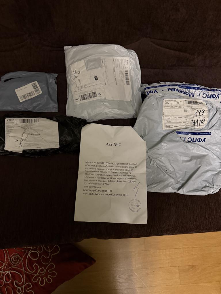 здравствуйте! Вторую часть моего заказа от 06.082025 я получила 08.10.2025. Вес второй посылки 0,870 кг вместо объявленных 2, 140 кг. Посылка вскрыта и заново упакована таможенной службой УФНС России аэропорт Внуково. Акт ПРилагаю. В посылке находится желтое платье и пластмассовые босоножки (размер очень маленький, не соответствует российскому 39). В посылке так же находятся подкладки для плеч и брошь КИТ, которые я не заказывала. Из 9 товаров, которые я ожидала, доставлены только два. Прошу вернуть мен деньги за непоставленный товар.