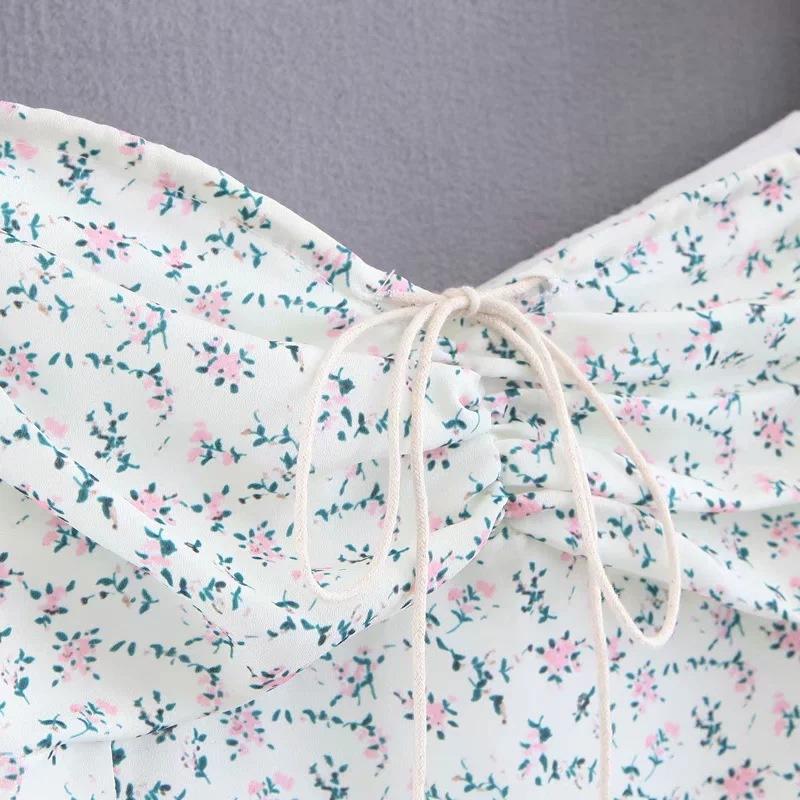 Богемное женское мини-сексуальное элегантное платье с пышными рукавами и цветочным принтом