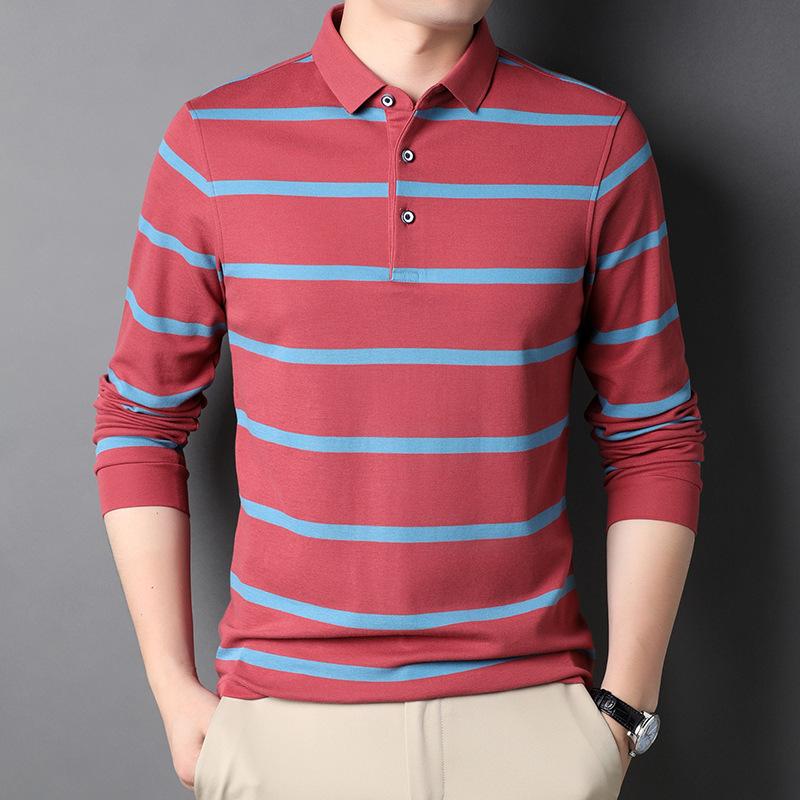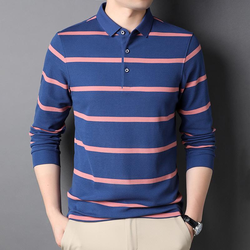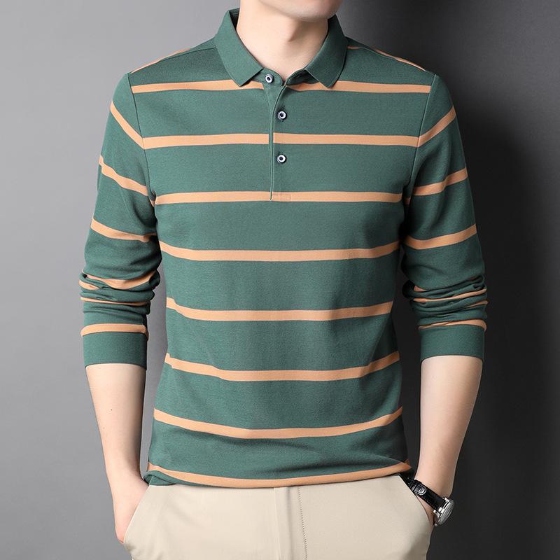 Весенняя новинка с длинными рукавами для мужчин молодого и среднего возраста, полосатая рубашка поло с тонкими лацканами, футболка с длинными рукавами