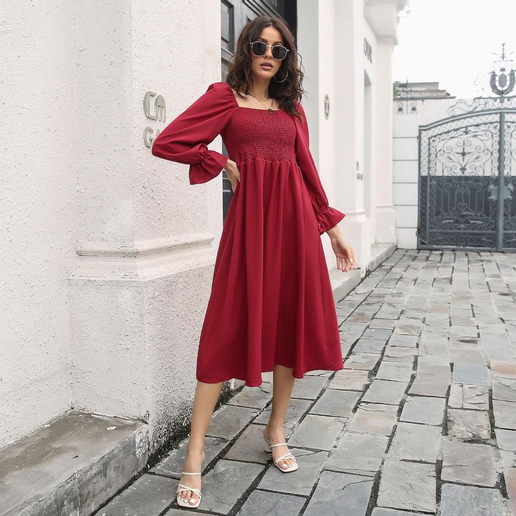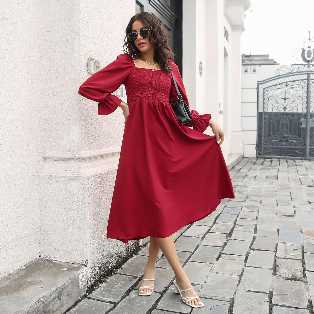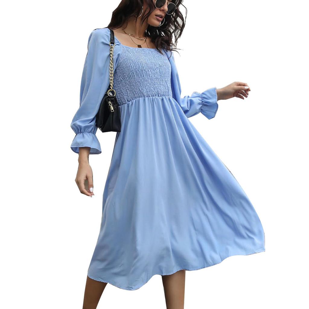 Весенние расклешенные платья средней длины с расклешенными рукавами и одним вырезом и длинными рукавами, плиссированные платья больших размеров