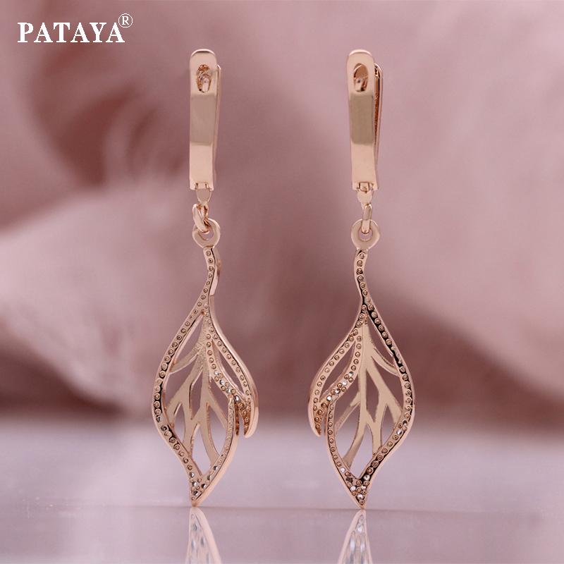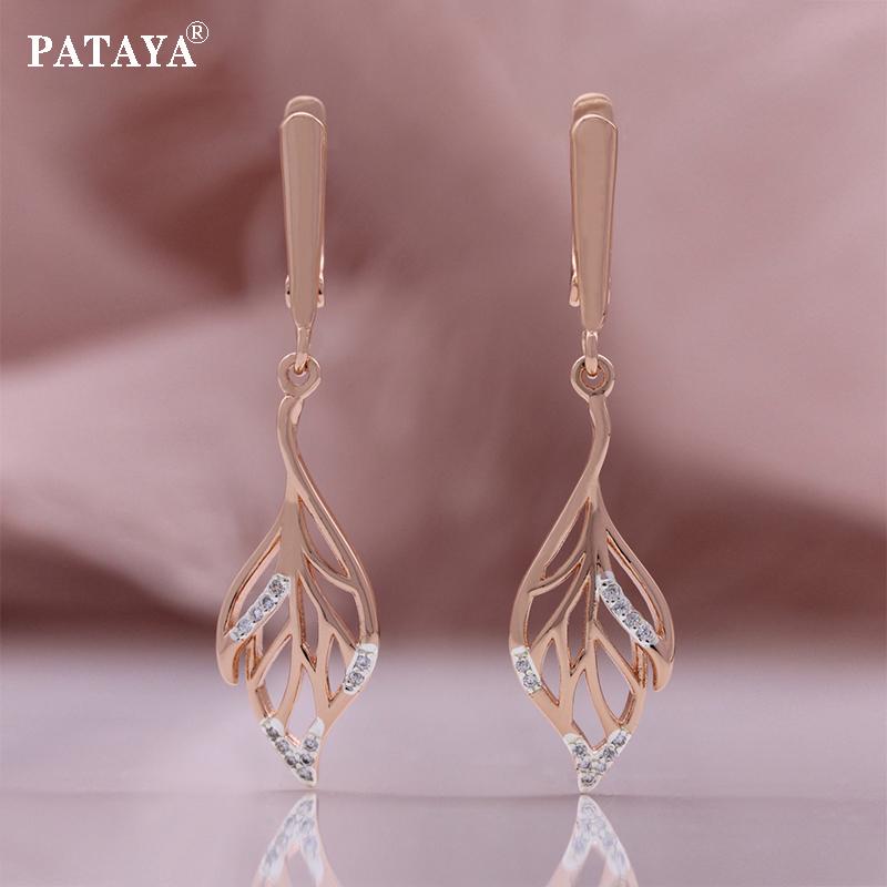 PATAYA Серьги в форме листьев из искусственного циркона с белым покрытием и розовым золотом