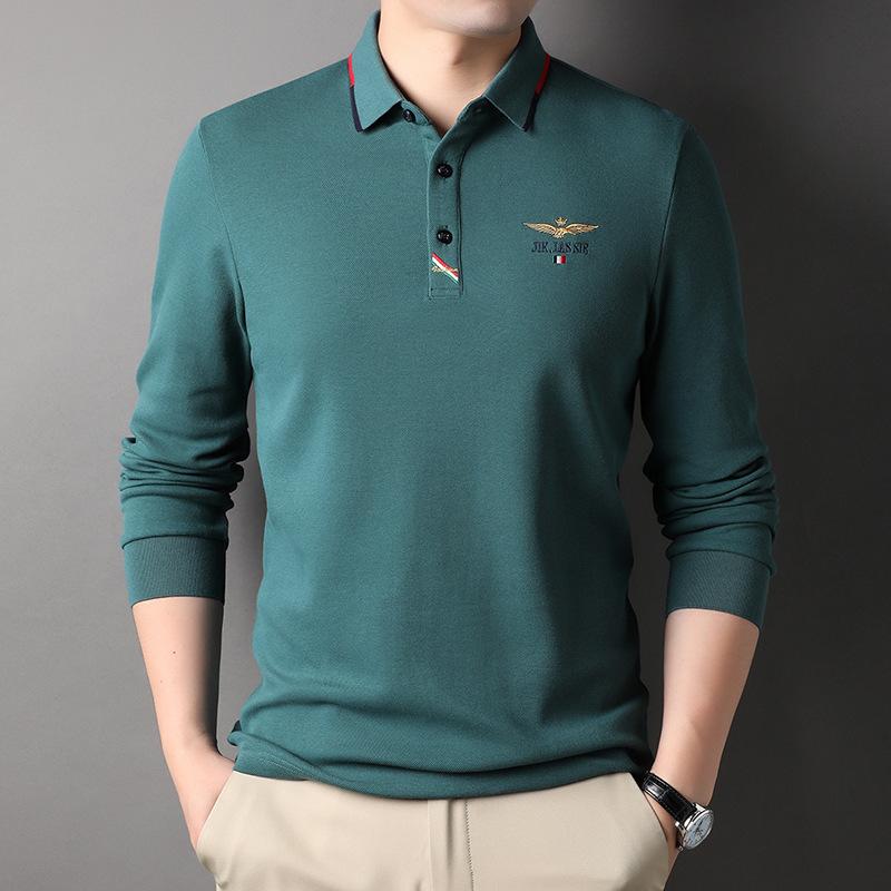 Весенне-осенняя мужская футболка с длинным рукавом, с лацканами, тонкая хлопковая рубашка поло, новая мужская футболка, базовая