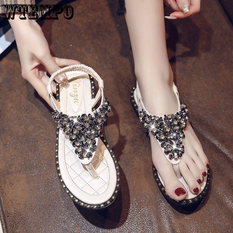 Большие размеры Женская обувь Плоские сандалии Pinch Сандалии со стразами Шлепанцы Обувь Пляжная обувь Женская летняя — купить товар онлайн с бесплатной доставкой по всему миру!
