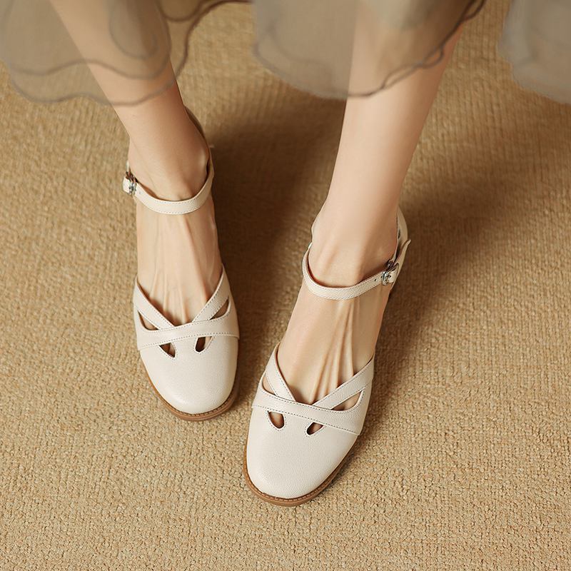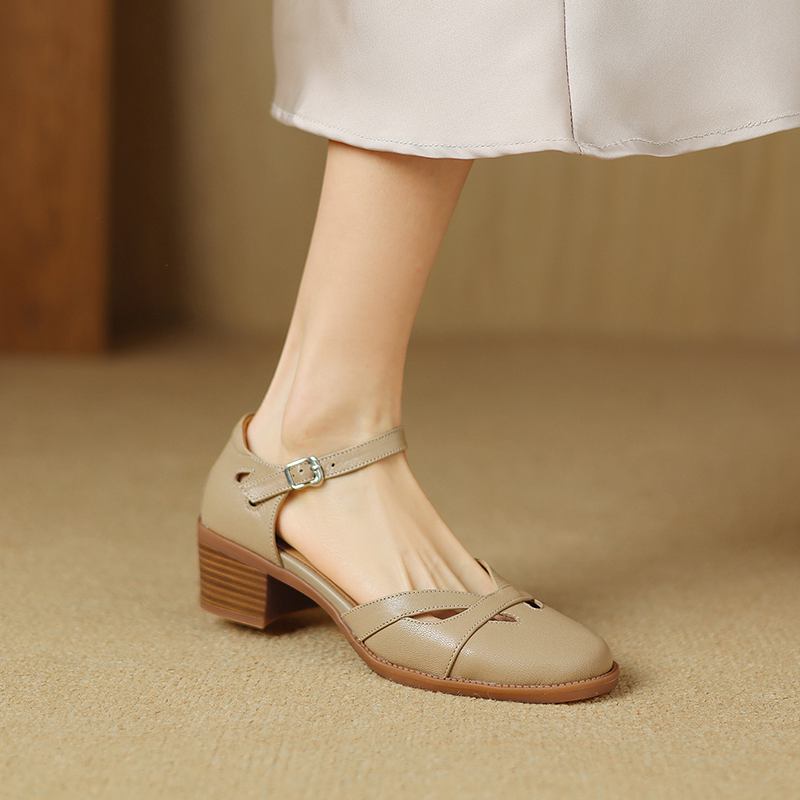 Krazing Pot, элегантные осенние женские туфли-лодочки из овчины с пряжкой и пряжкой, круглый носок, средний каблук, осенние украшения, летние красивые женские туфли-лодочки