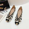 Женская обувь, туфли на плоской подошве с бантом, мягкие туфли для беременных, вязаная обувь с квадратной головкой, туфли в горошек для девочек, женские балетки