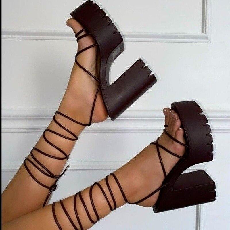 Женские сандалии-гладиаторы на платформе, новые женские пикантные туфли на высоком каблуке с перекрестной завязкой, летняя женская обувь, большие размеры 43